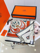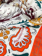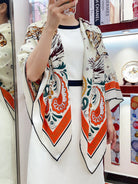 Guepards Bandana Double Face Scarf 140 CM In White Mix Red Colorful Cashmere And Silk 334190