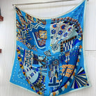 Haute Parure Scarf 135 CM Blue Colorful Cashmere And Silk 405069