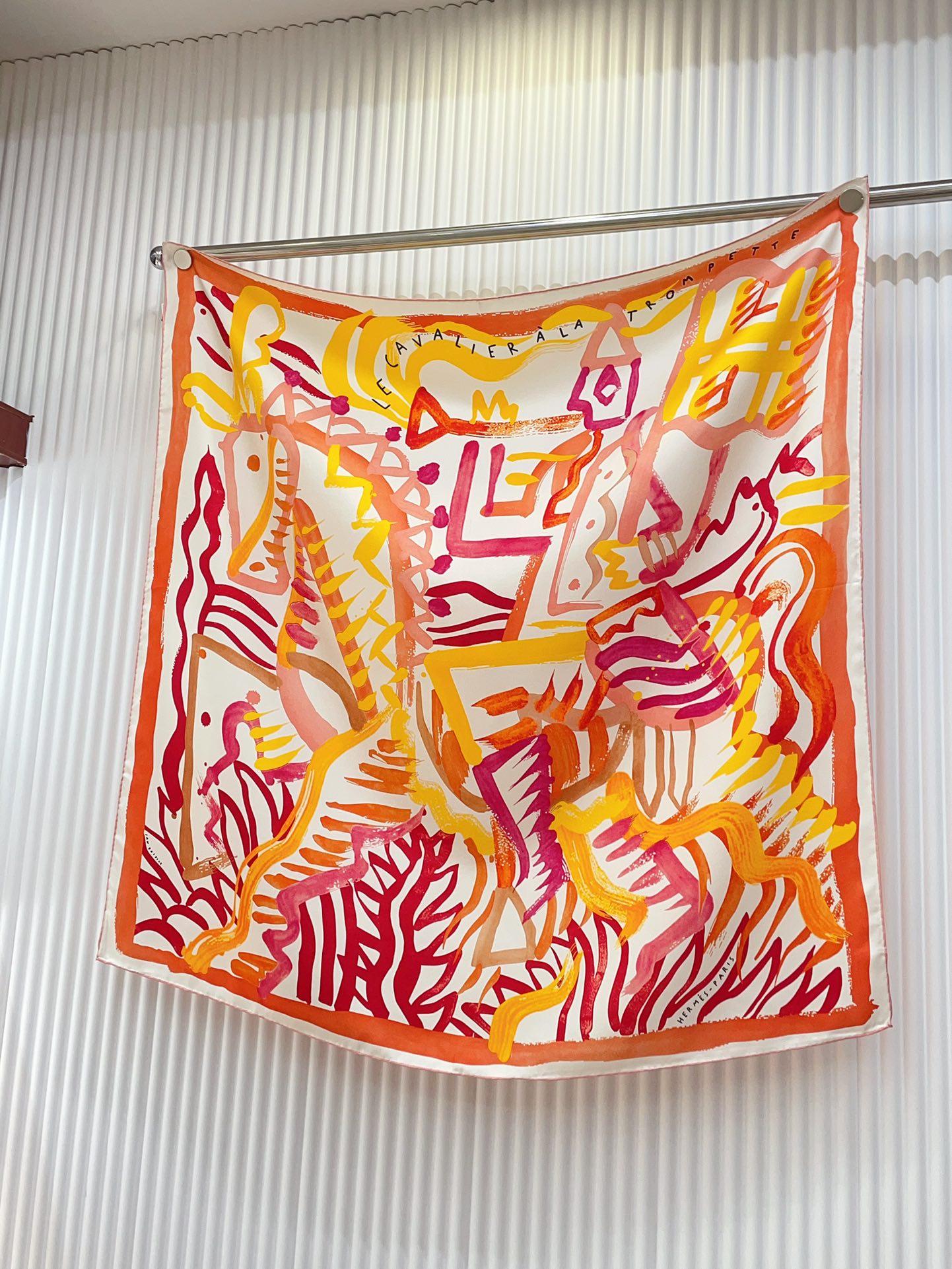 Le Cavalier A La Trompette Scarf 90 CM In Colorful Silk 208589