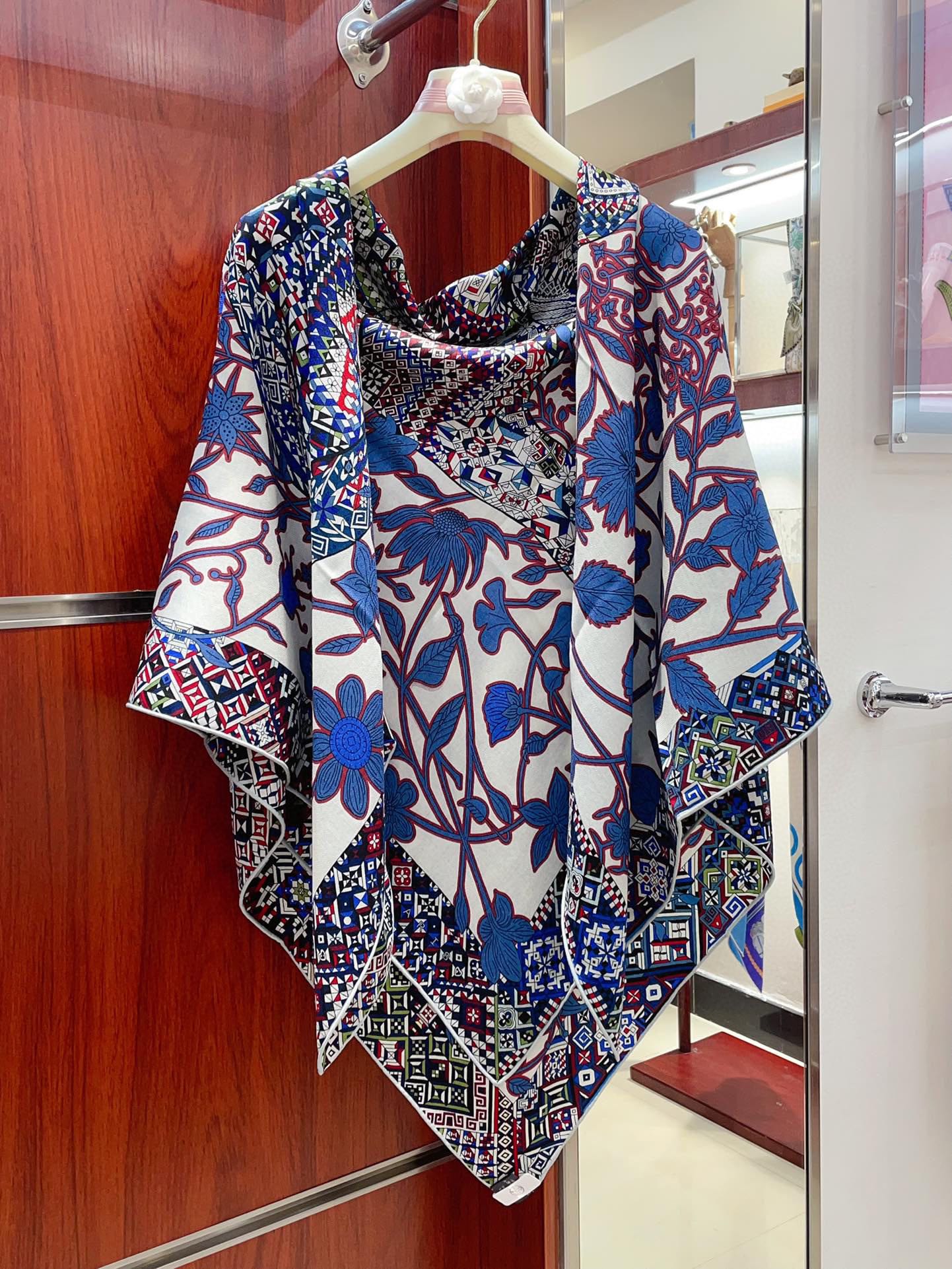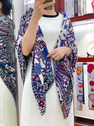 Le Jaguar Et Le Colibri Shawl 135 CM Blue Colorful Cashmere And Silk 357902