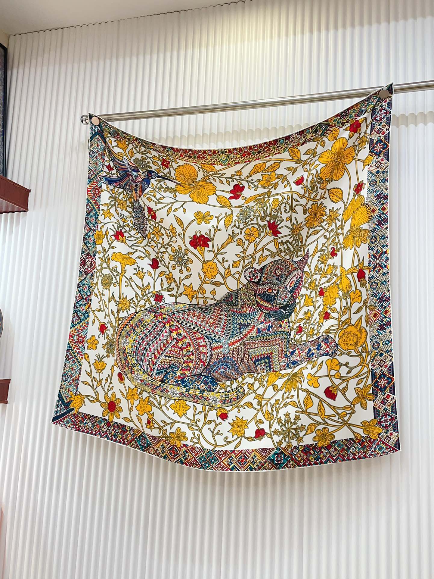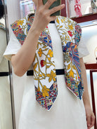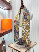 Le Jaguar Et Le Colibri Shawl 90 CM In Yellow Colorful Silk Twill 274206
