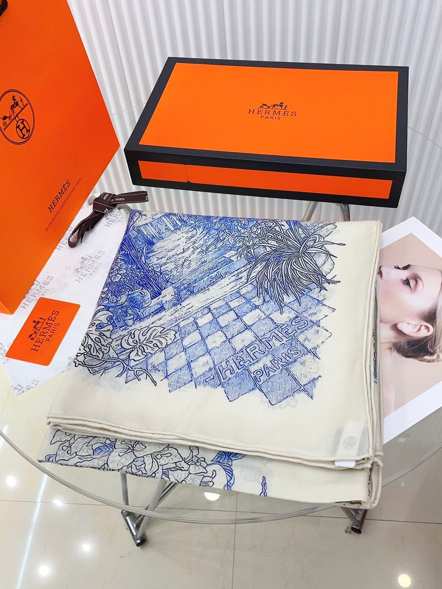 Le Jardin De Leila Au Bloc Shawl 135 CM In Blue Cashmere And Silk 316262