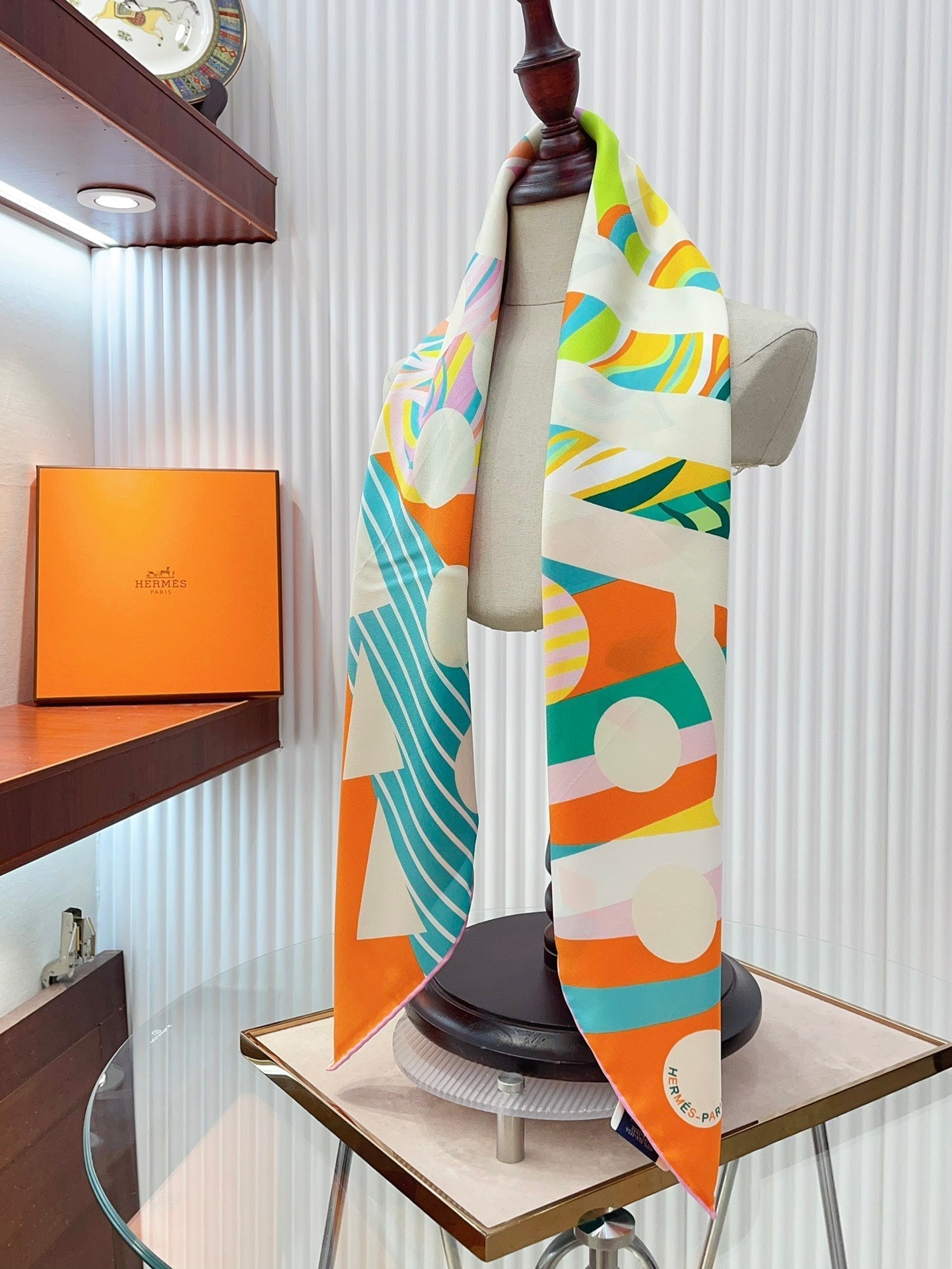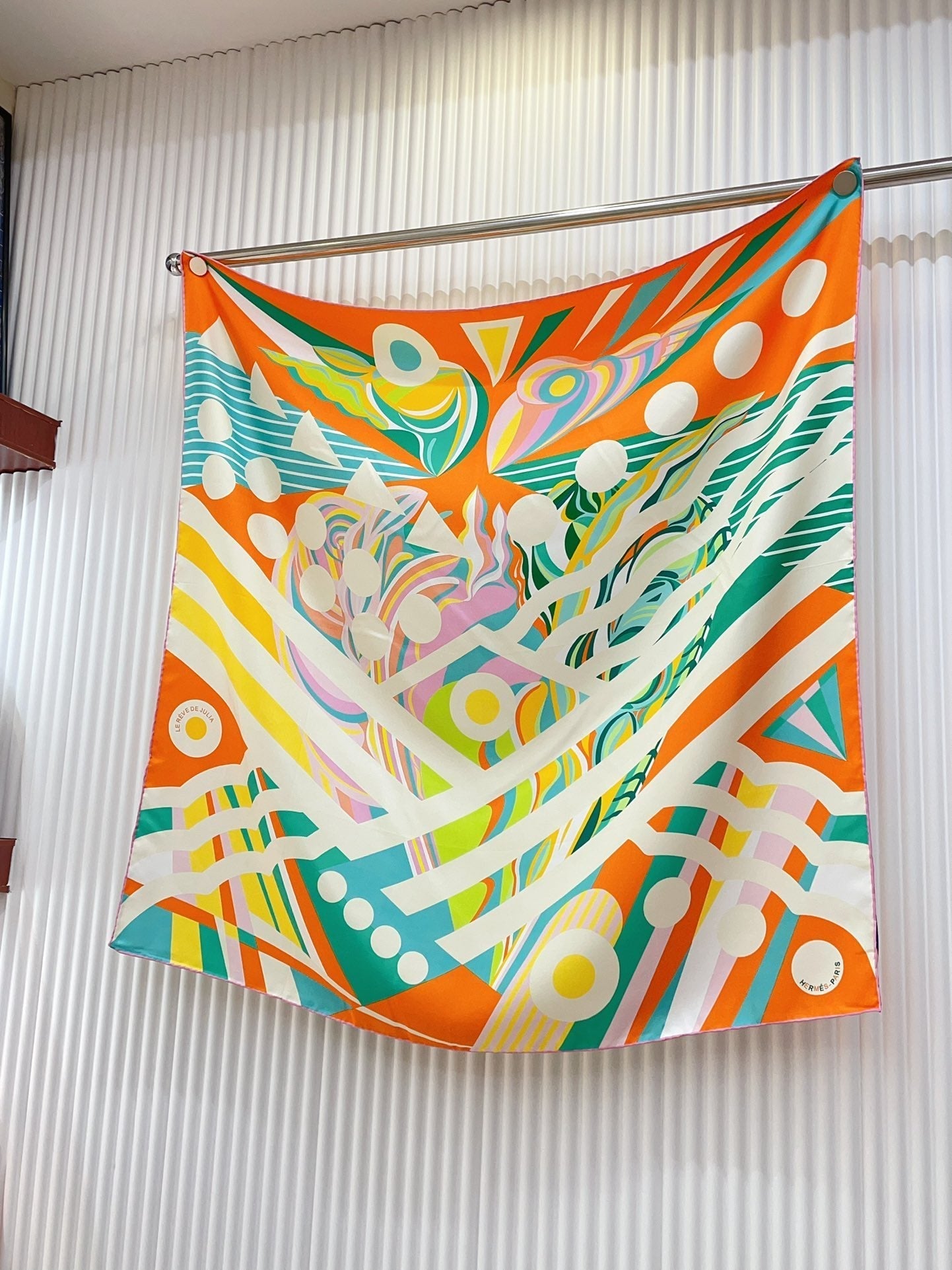 Le Reve De Julia Scarf 90 CM In Orange Colorful Silk Twill 198577