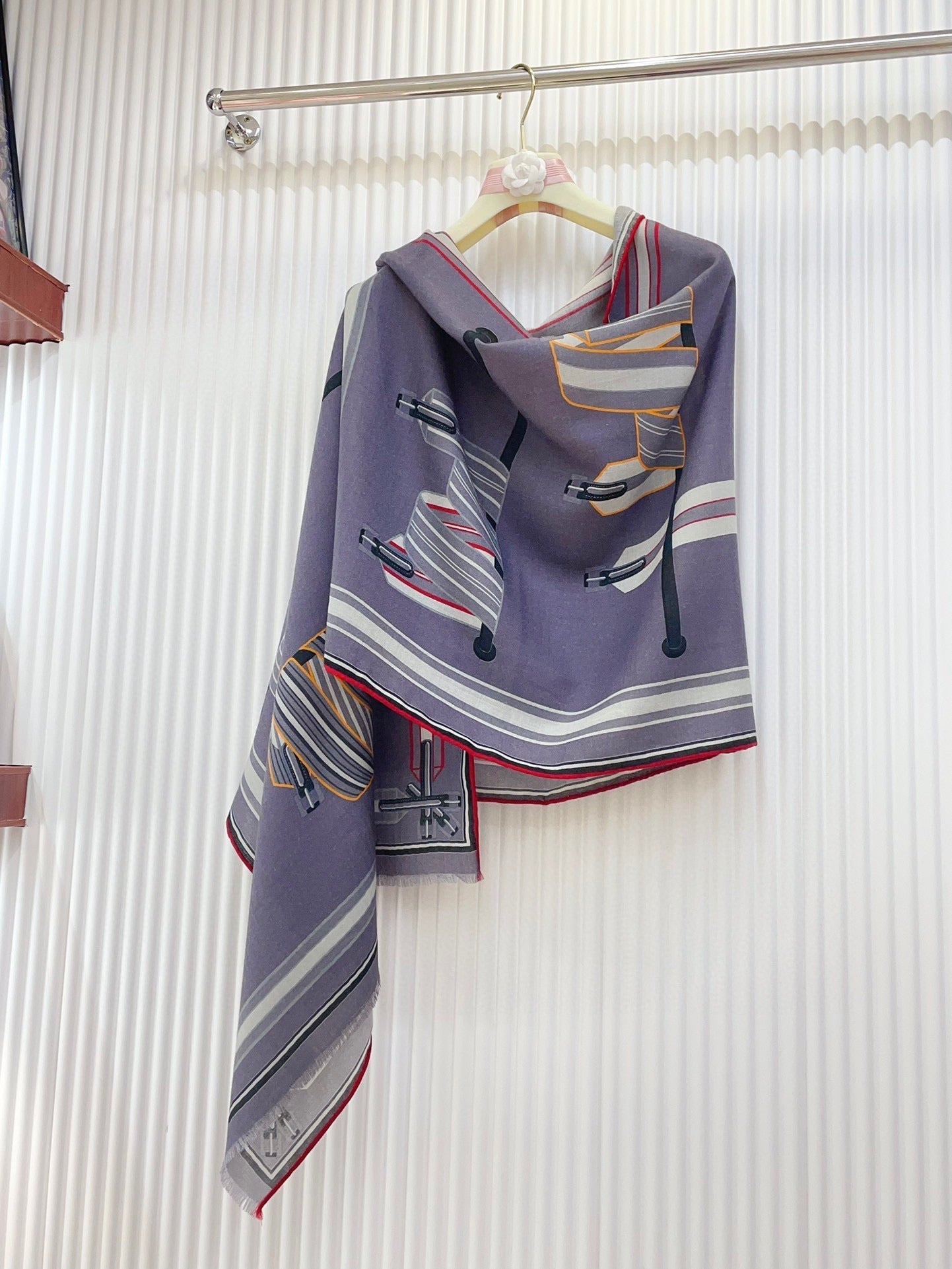 Les Sangles En Finesse Rectangle Scarf 180 CM In Grey Purple Coloful Cashmere And Silk 373655