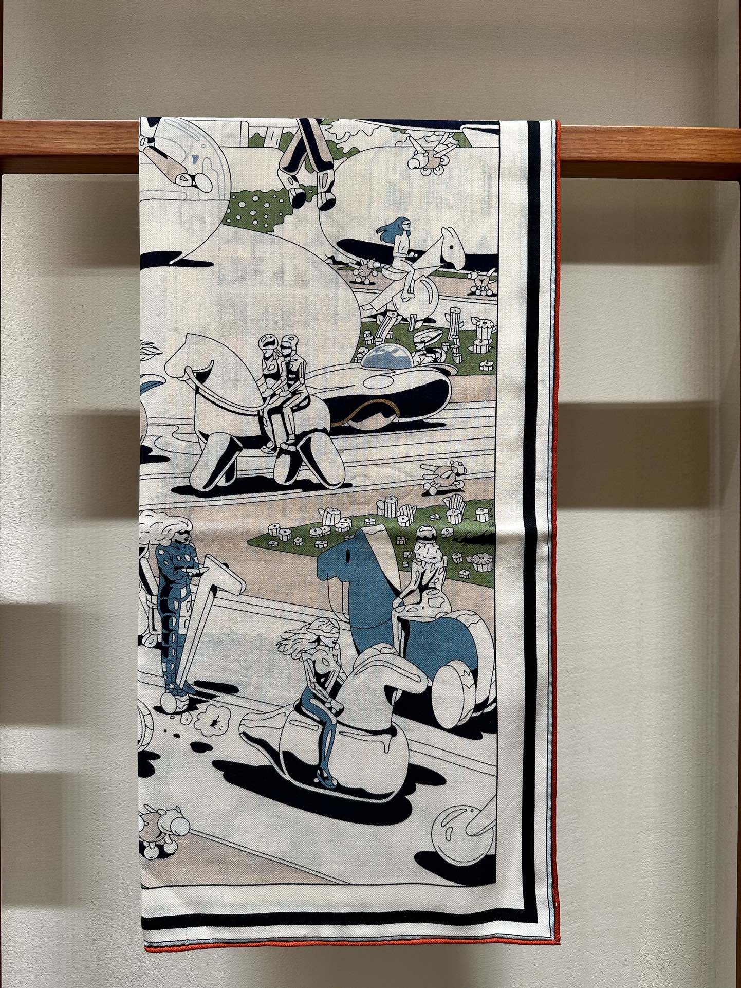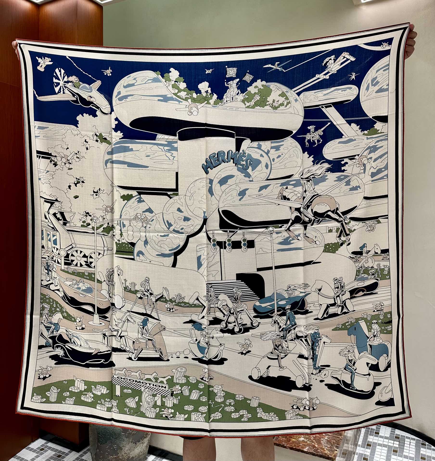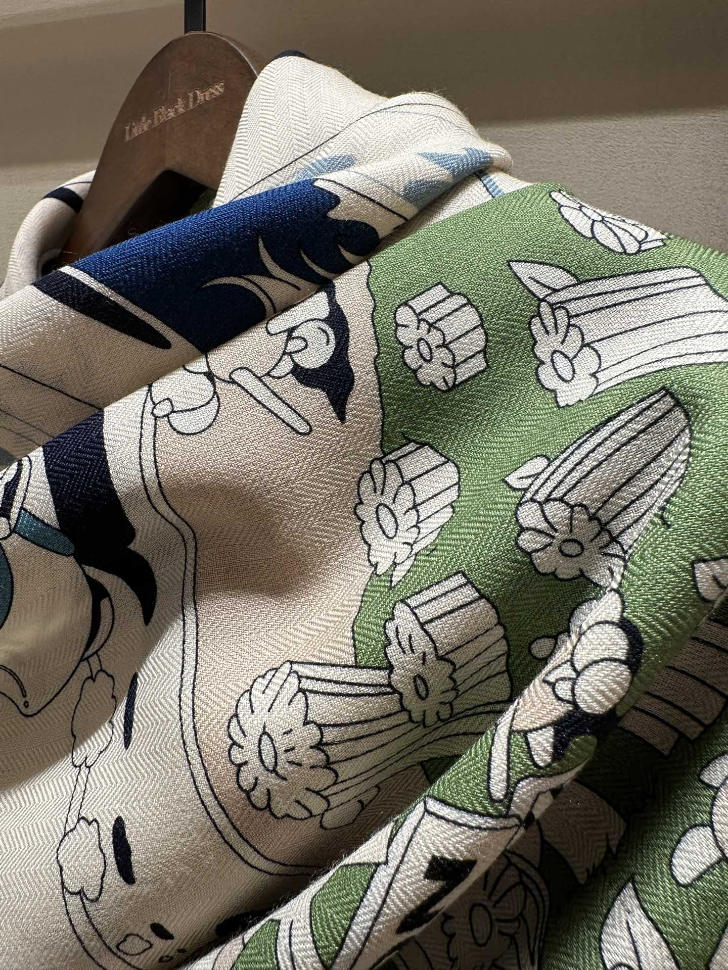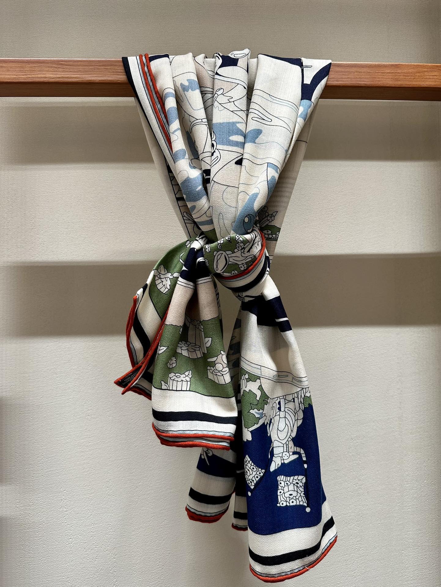 Locomotion Shawl 140 CM In Dark Blue Colorful Cashmere And Silk 384146