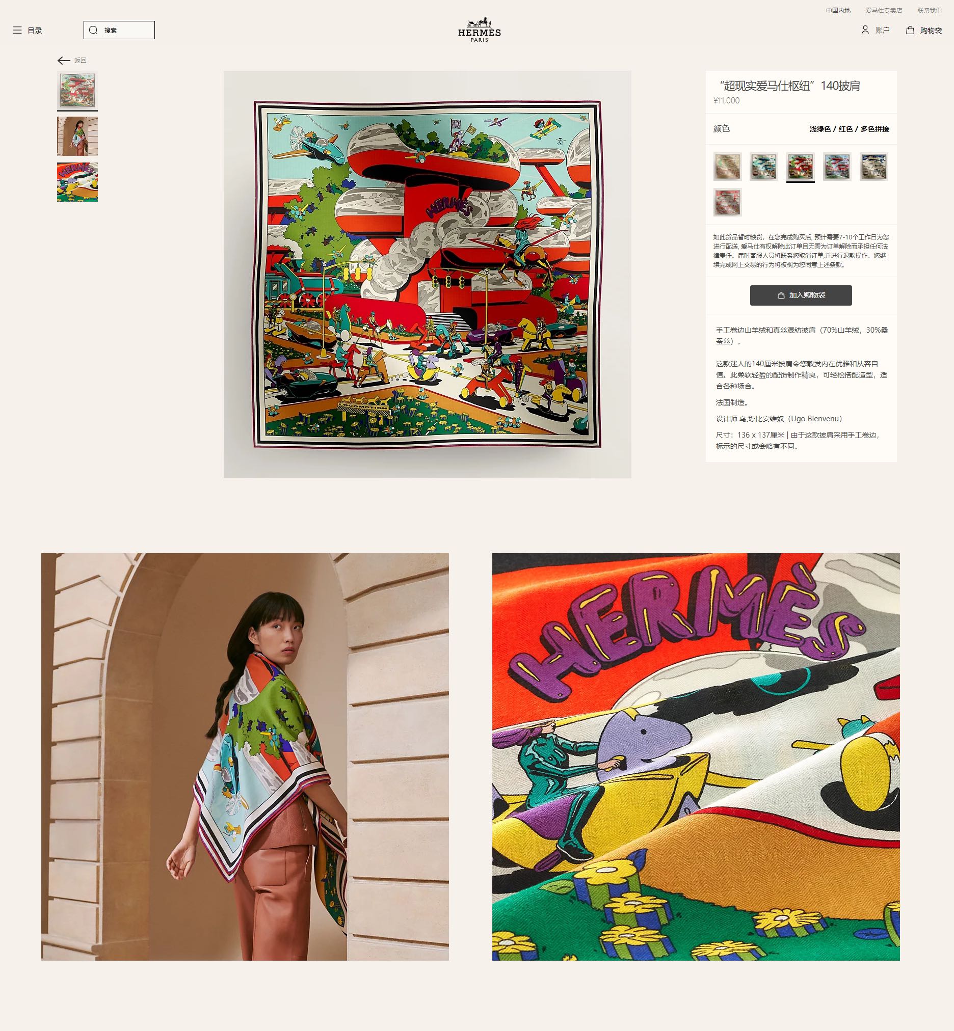 - Material: 70% Cashmere, 30% Silk
