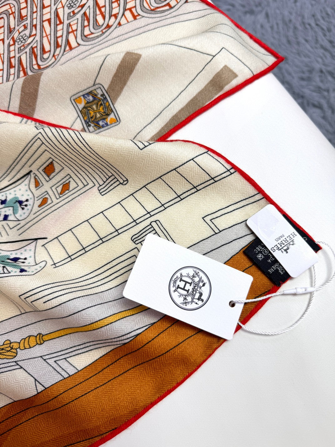 Mystere Au 24 Scarf 135 CM Yellow Orange Colorful Cashmere And Silk