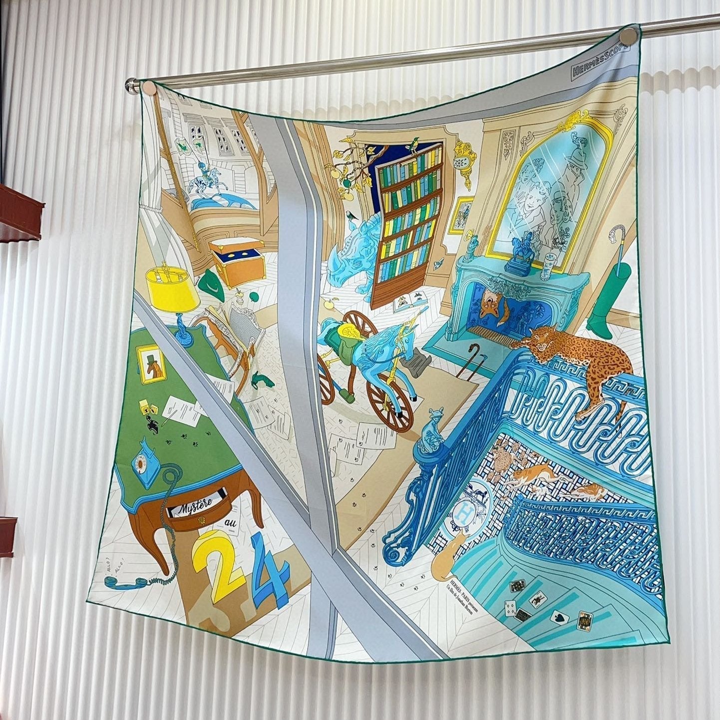 Mystere Au 24 Scarf 90 CM In Light Turquoise Colorful Silk Twill 321934