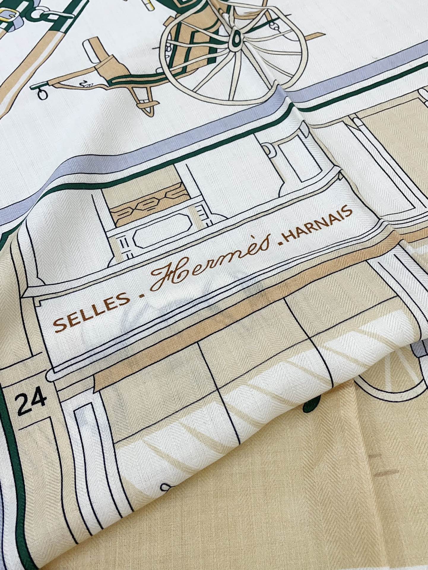 Palonniers Scarf 135 CM In White Colorful Cashmere And Silk 327471