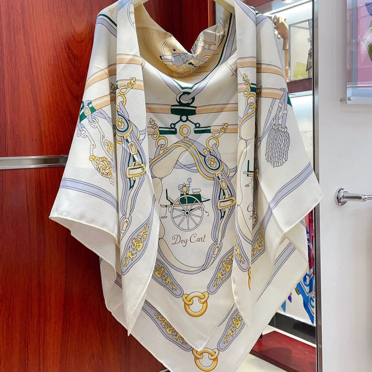 Palonniers Scarf 140 CM White Colorful Cashmere And Silk 401162