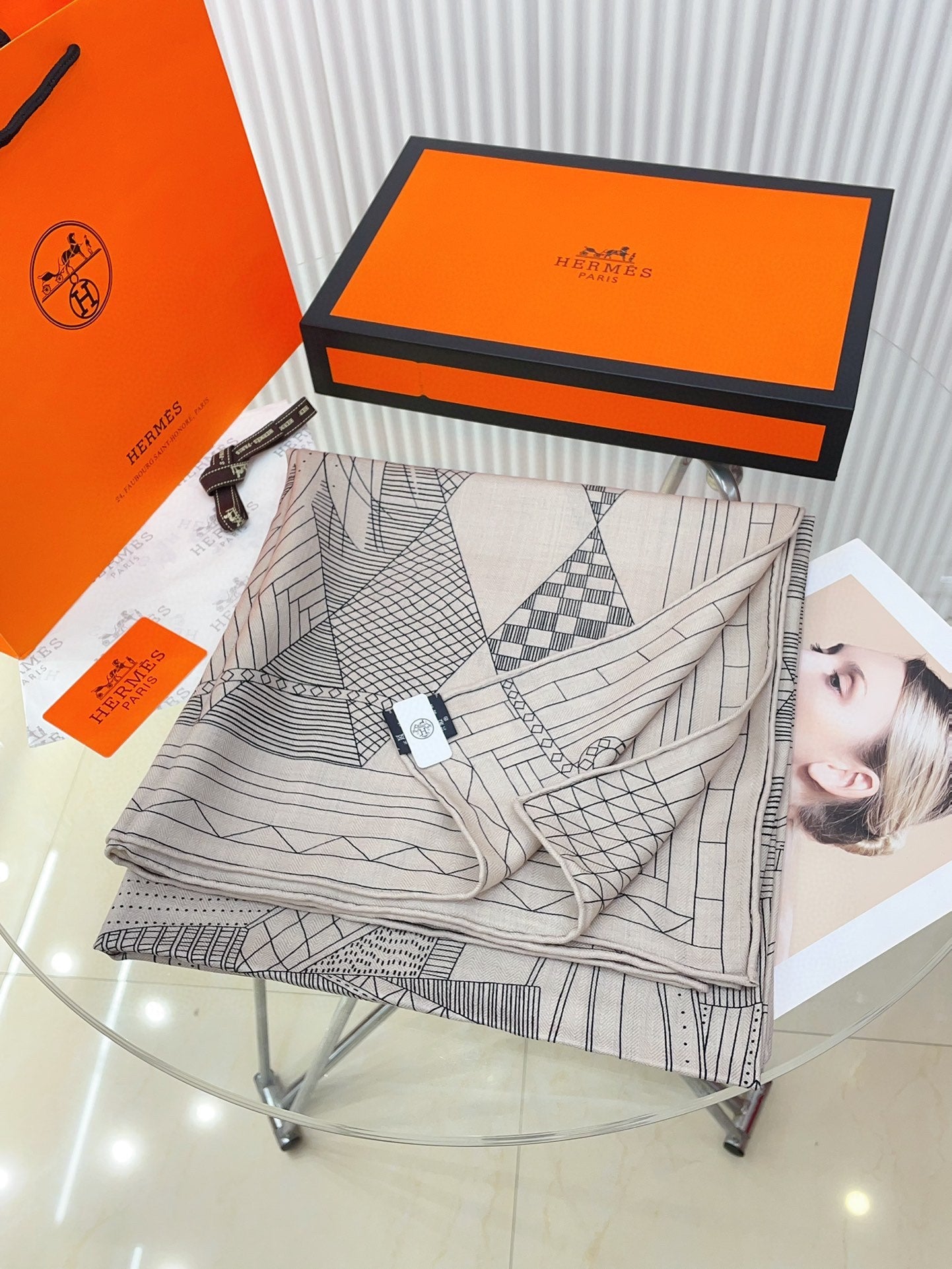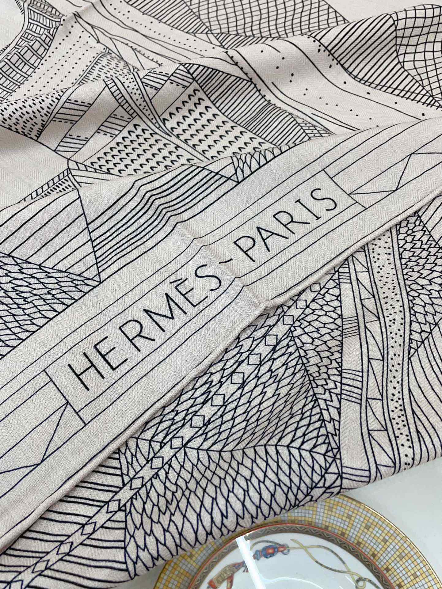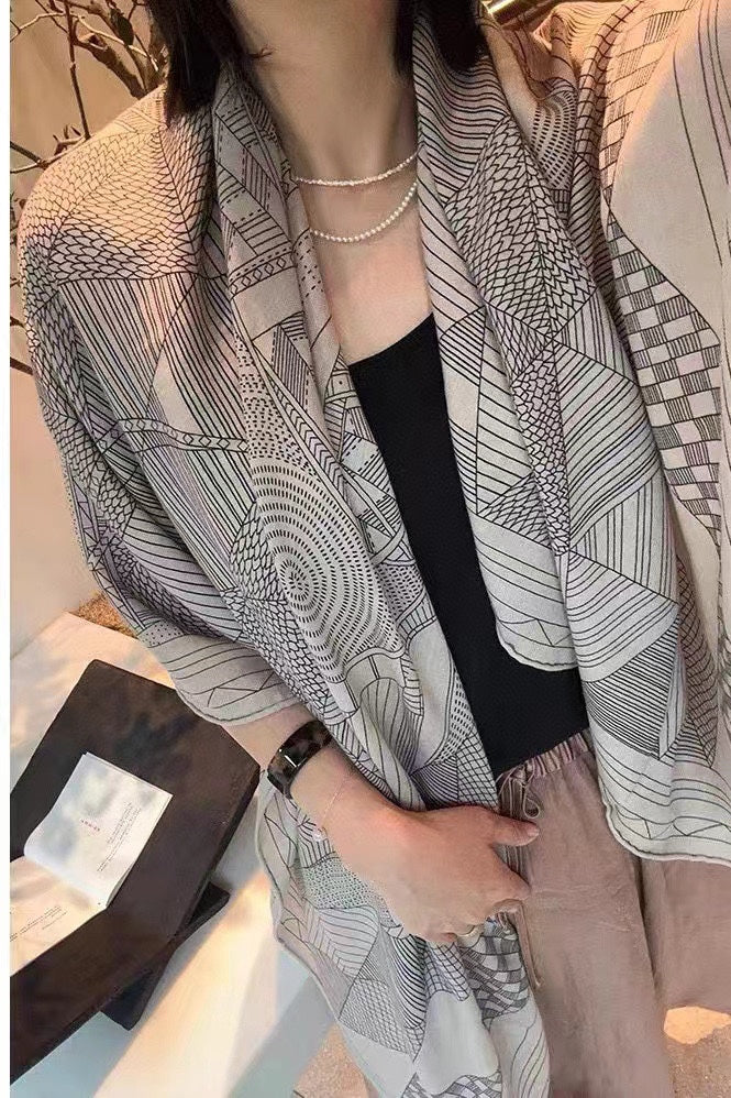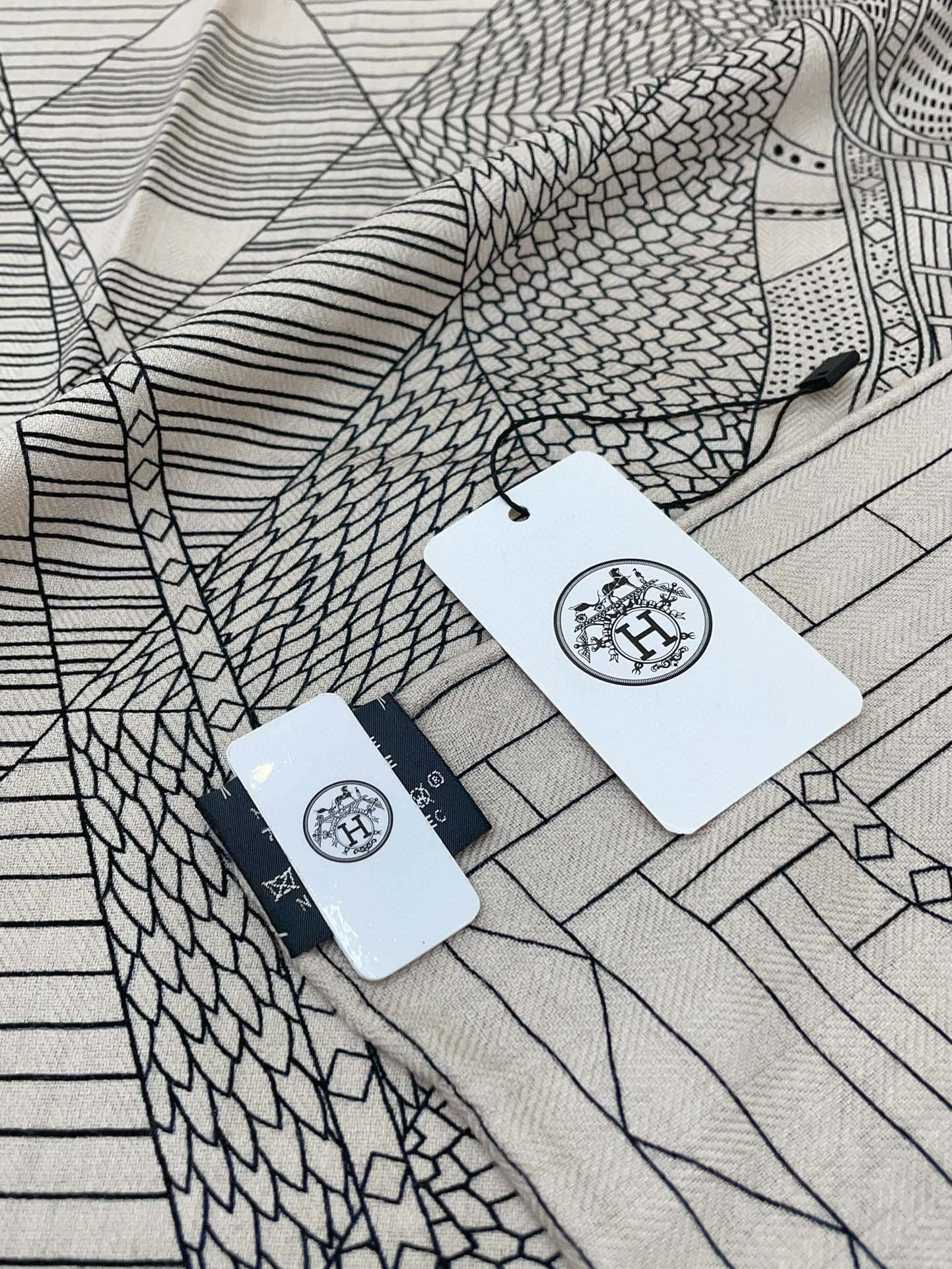 Patchwork Horse Shawl 140 CM In Grey Mix White Cashmere And Silk 350428