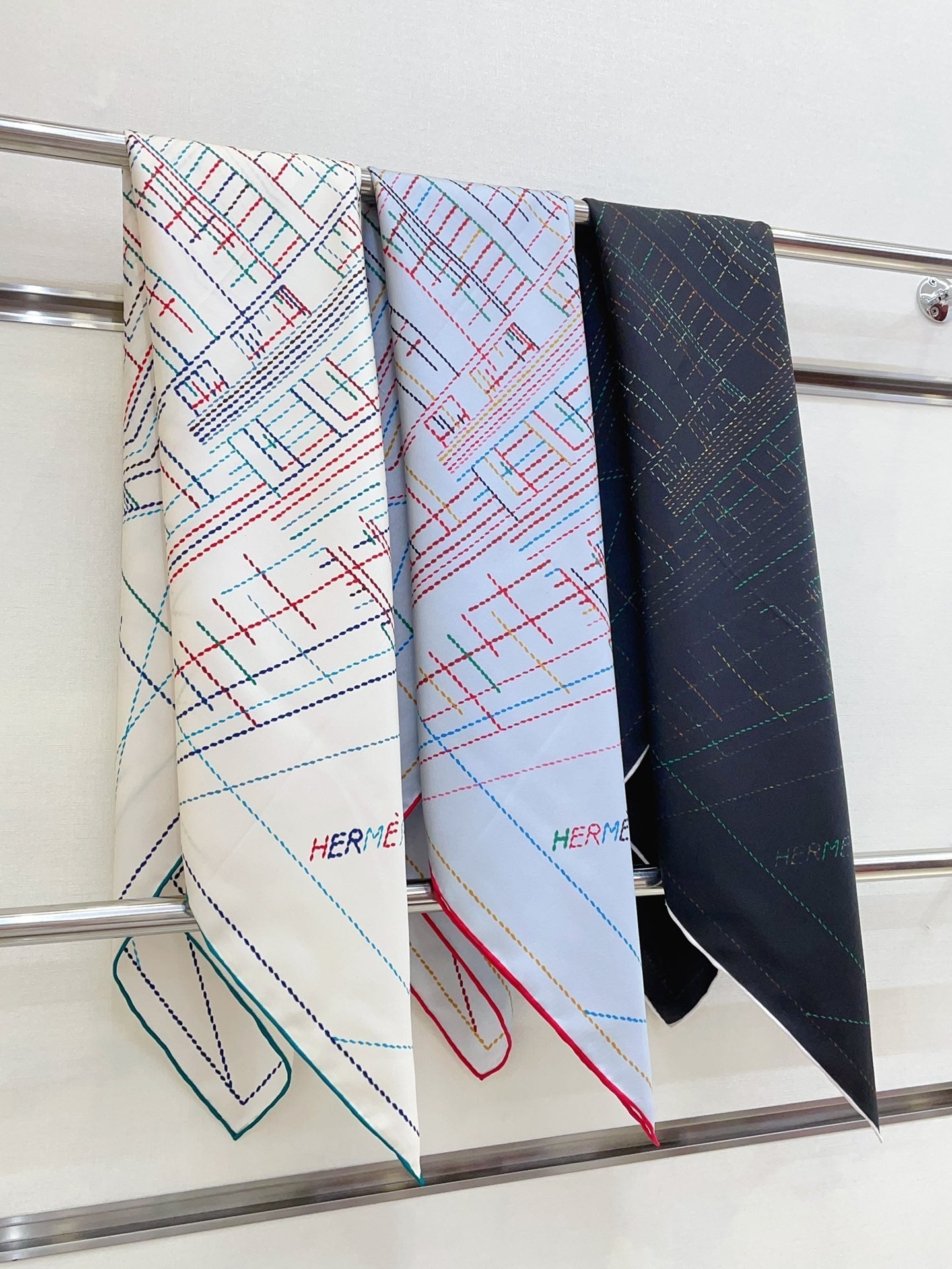 Pique Sellier Shawl 90 CM In White Colorful Silk Twill 312867