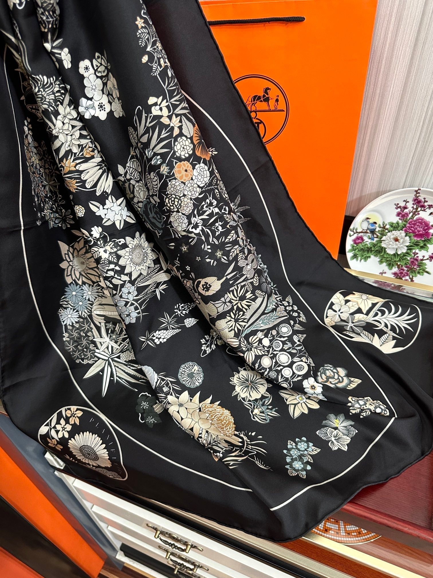 Planifleurs Scarf 90 CM Black Colorful Silk 404029