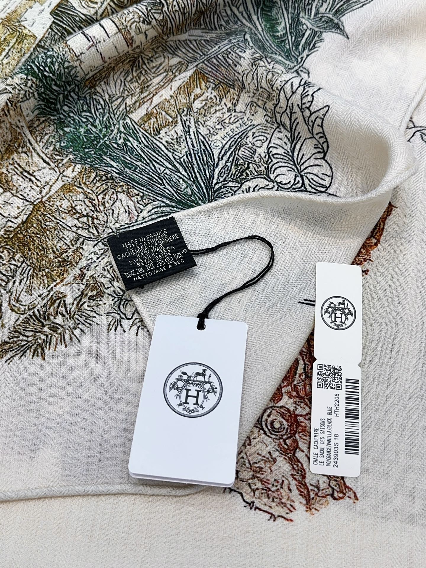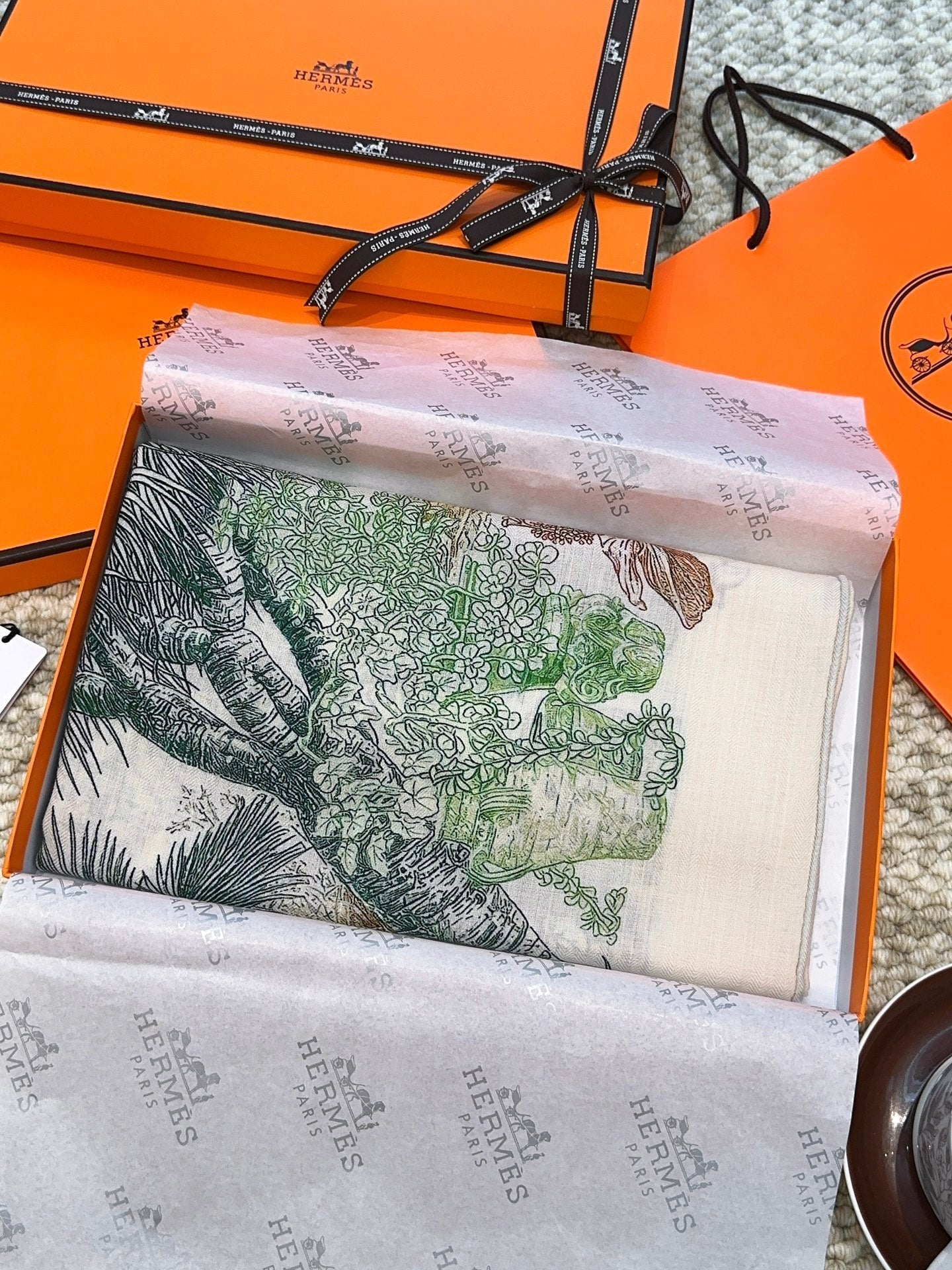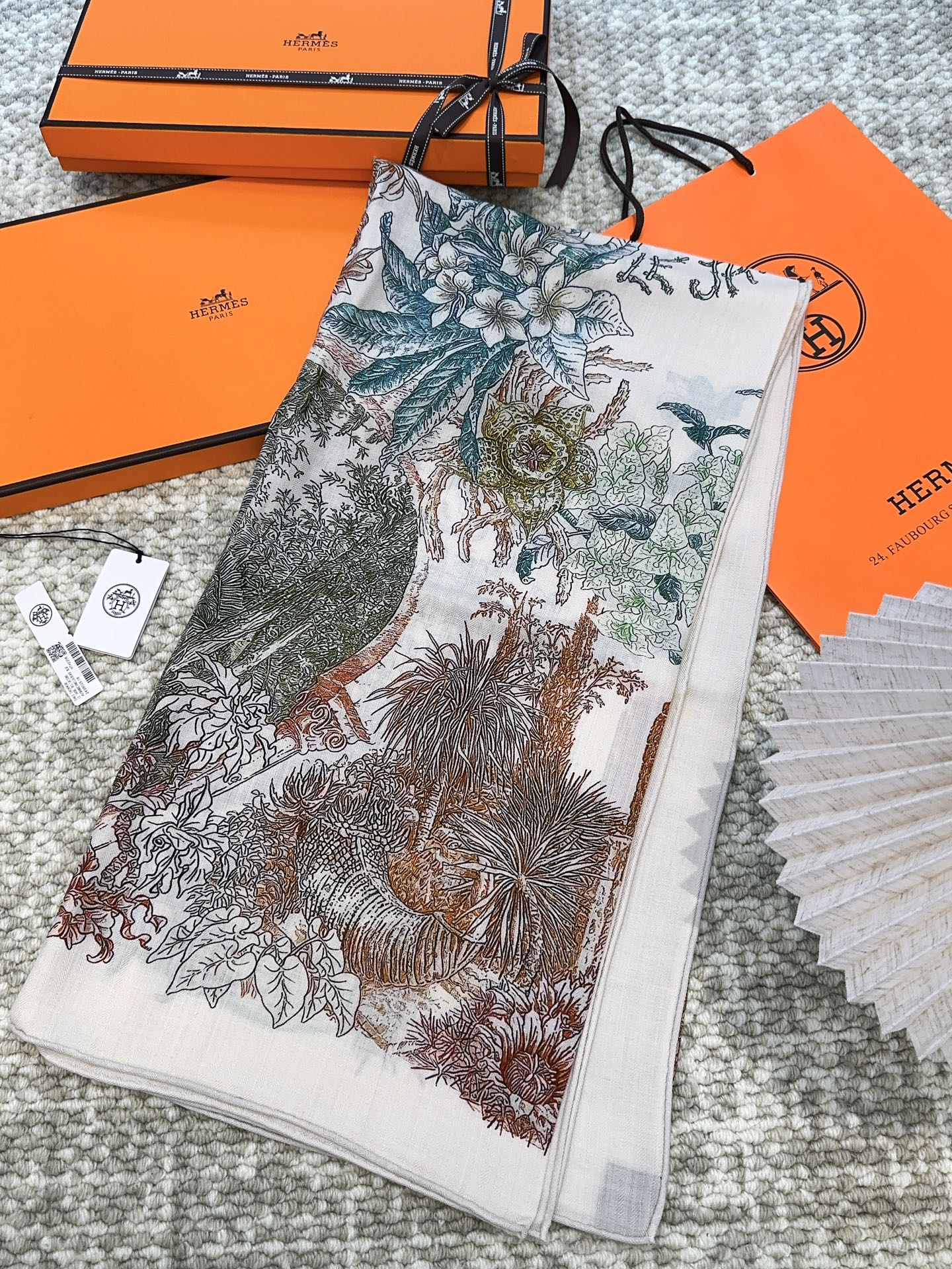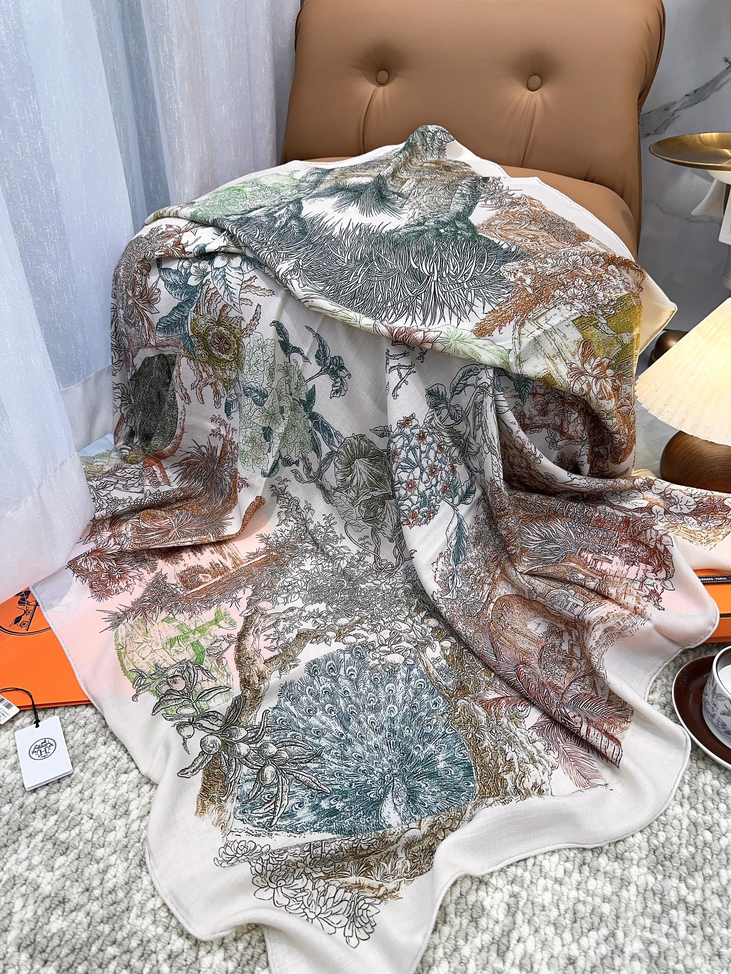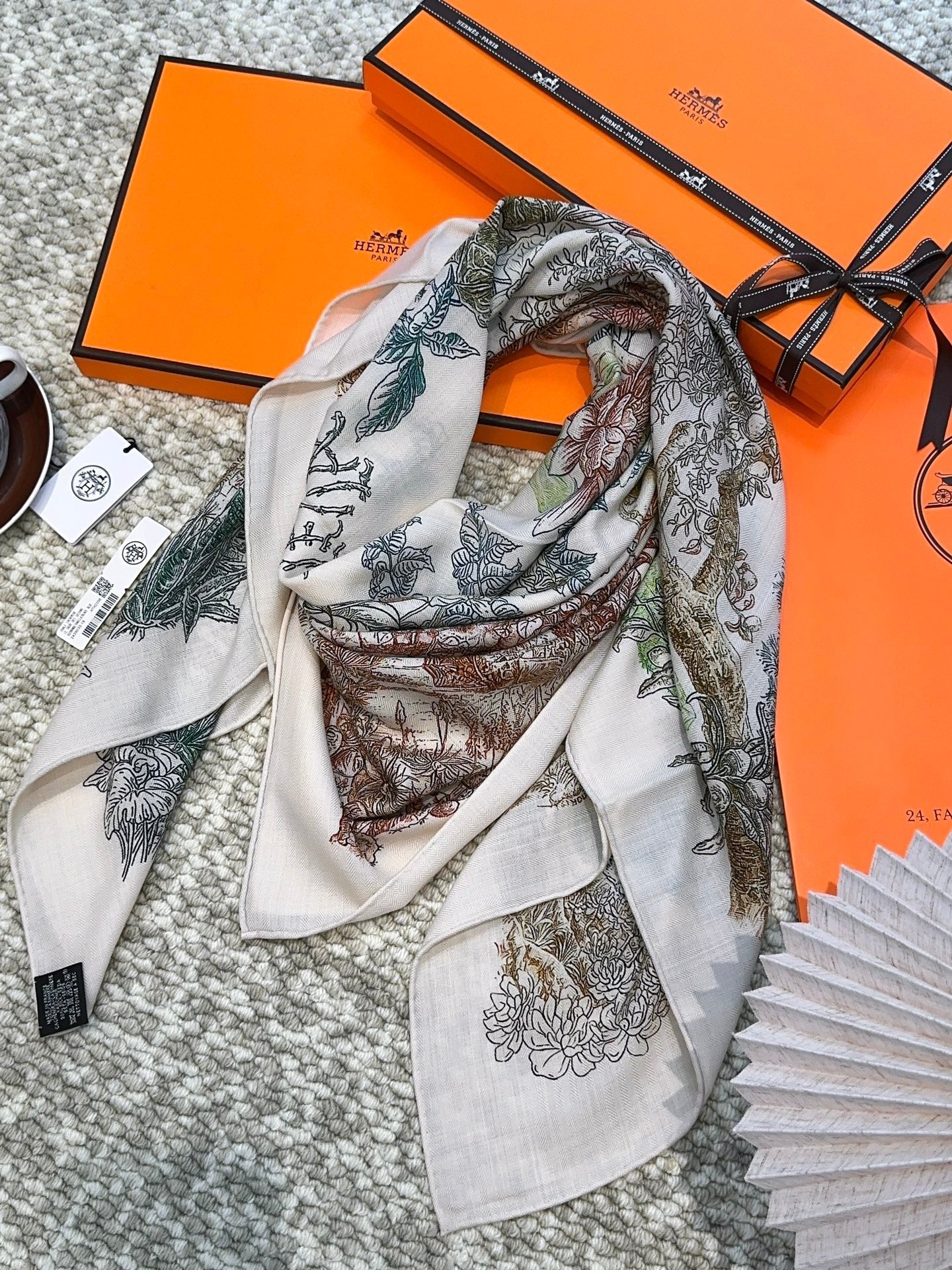 Scarf 140 CM Brown Colorful Cashmere And Silk 394551