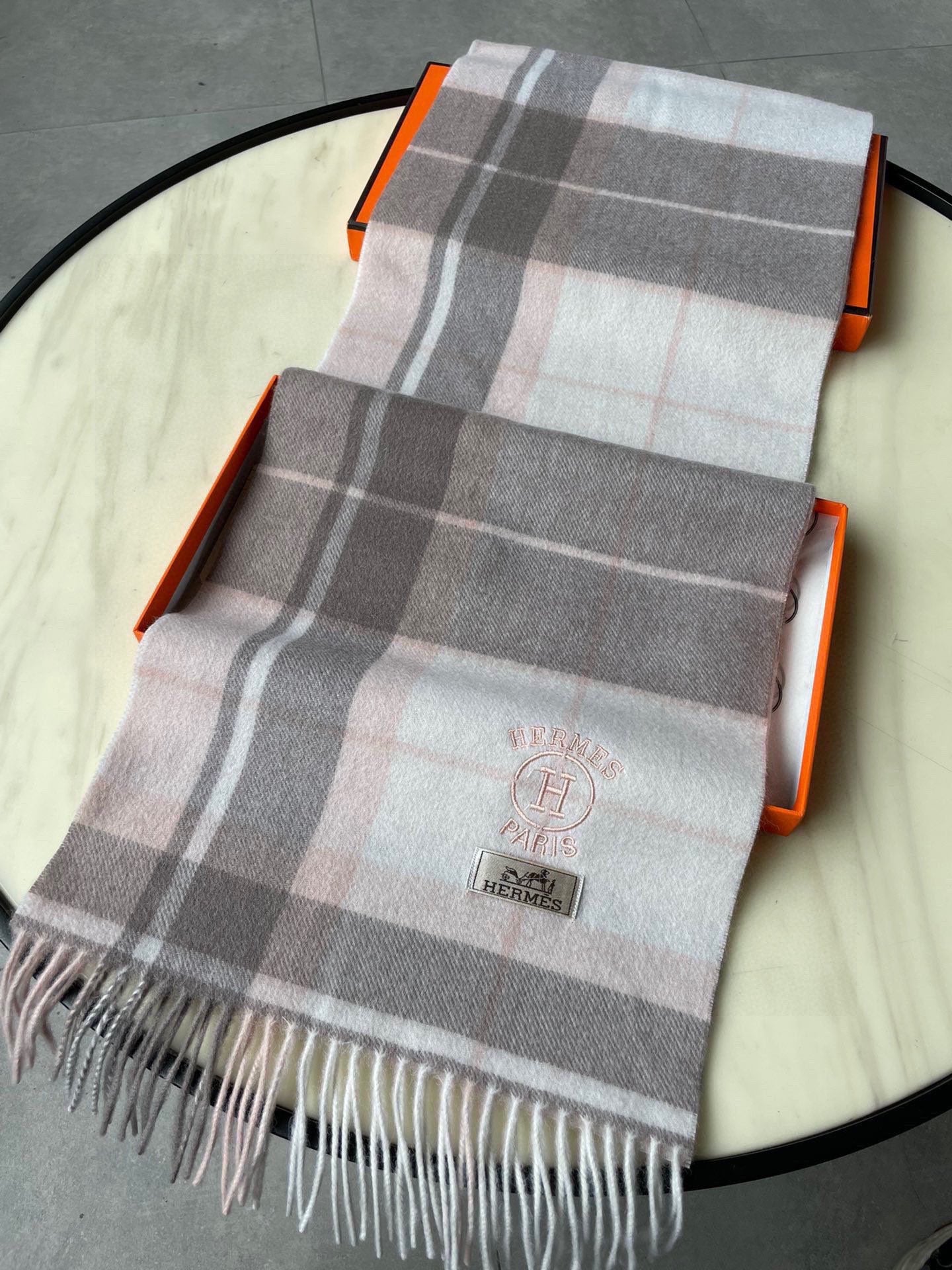 Scarf 180 CM In Light Grey White Mix Light Pink Caro Cashmere