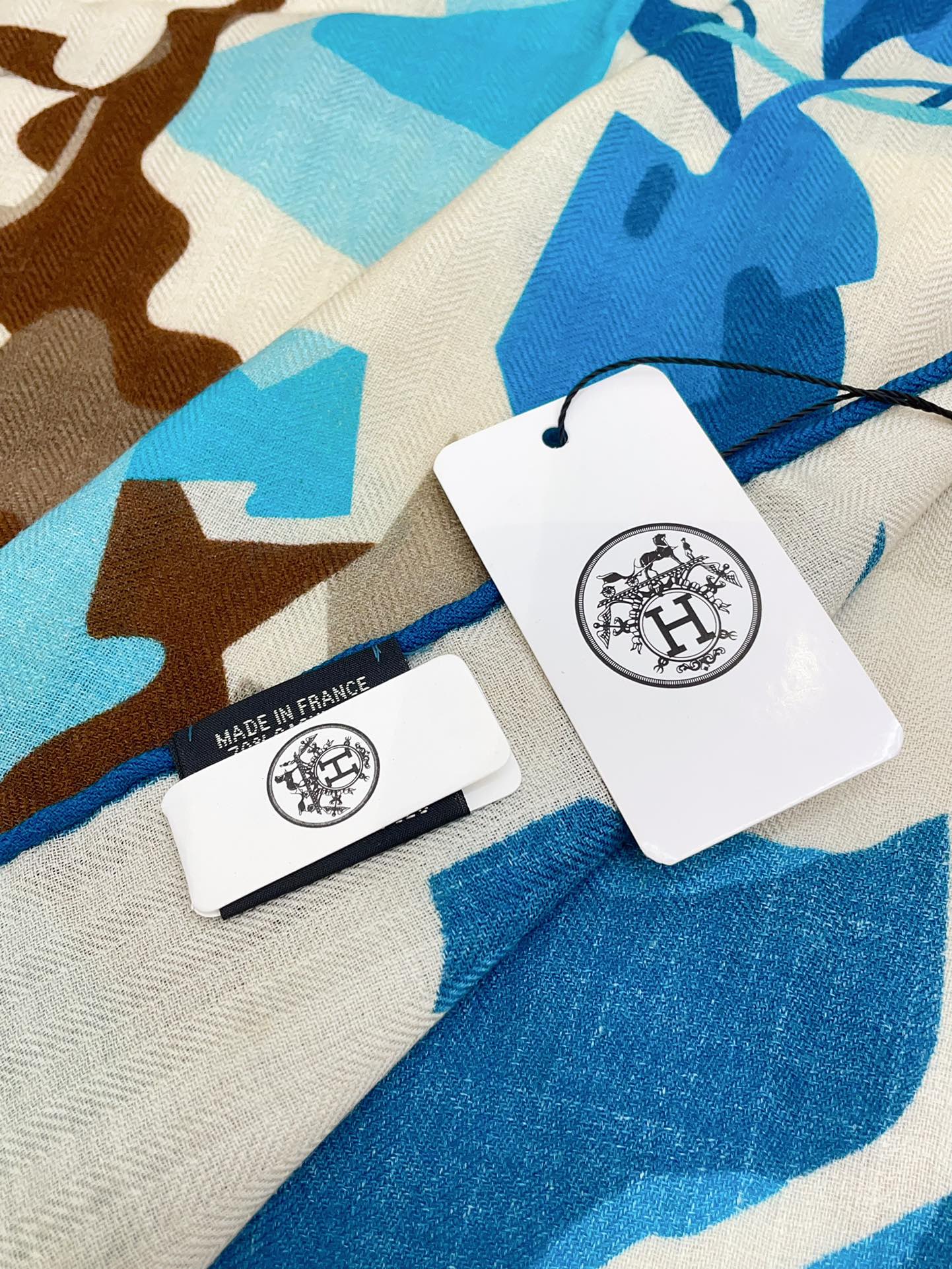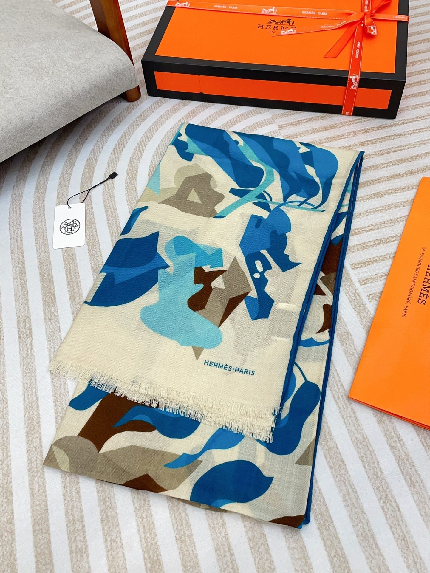Scarf 180 CM Khaki Green Colorful Mashmere And Silk 403884