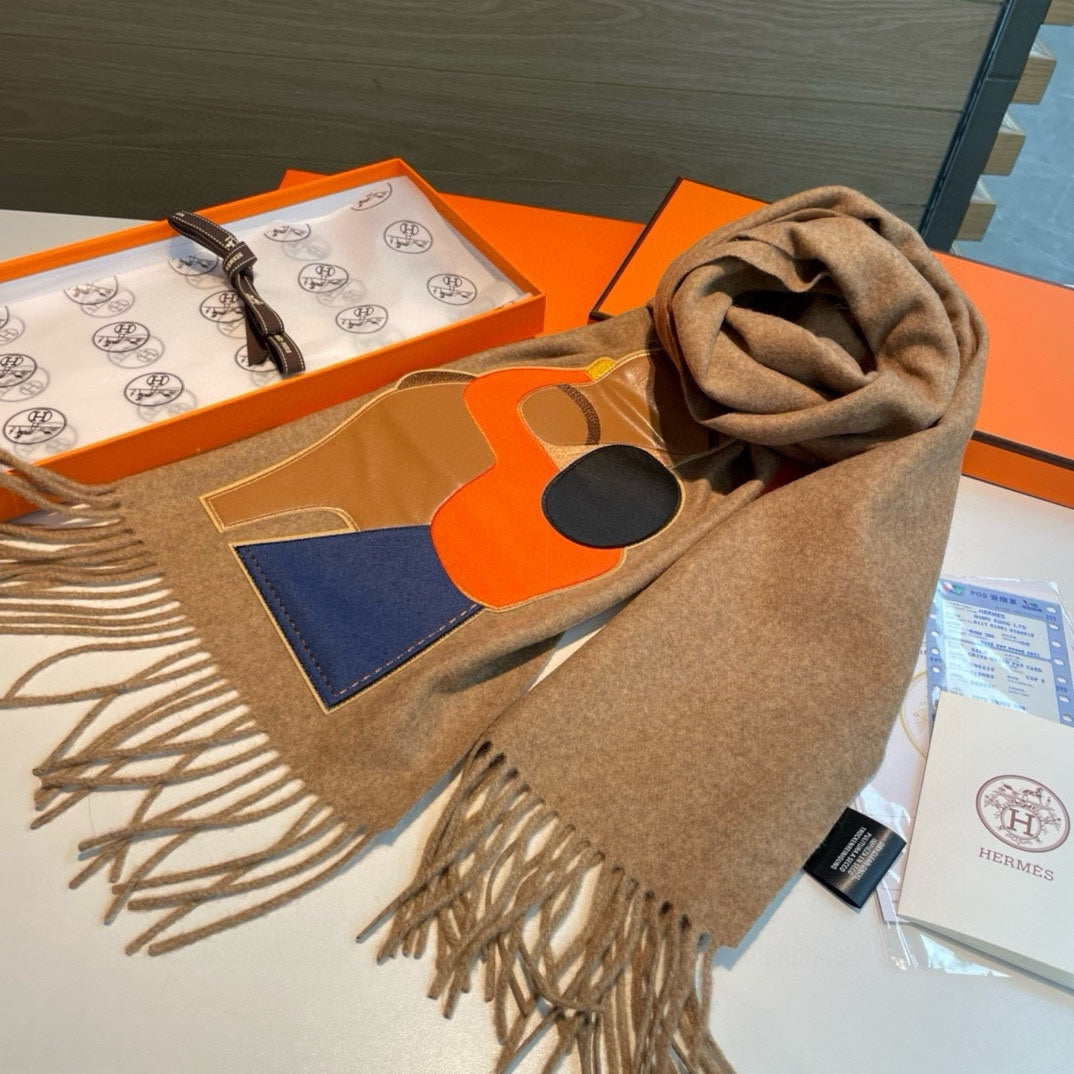 Scarf 200 CM Brown Cashmere And Leather 394476