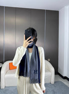 SCARF 180 CM IN LIGHT PINK MIX KHAKI BROWN CASHMERE WITH EMBROIDERED LOGO