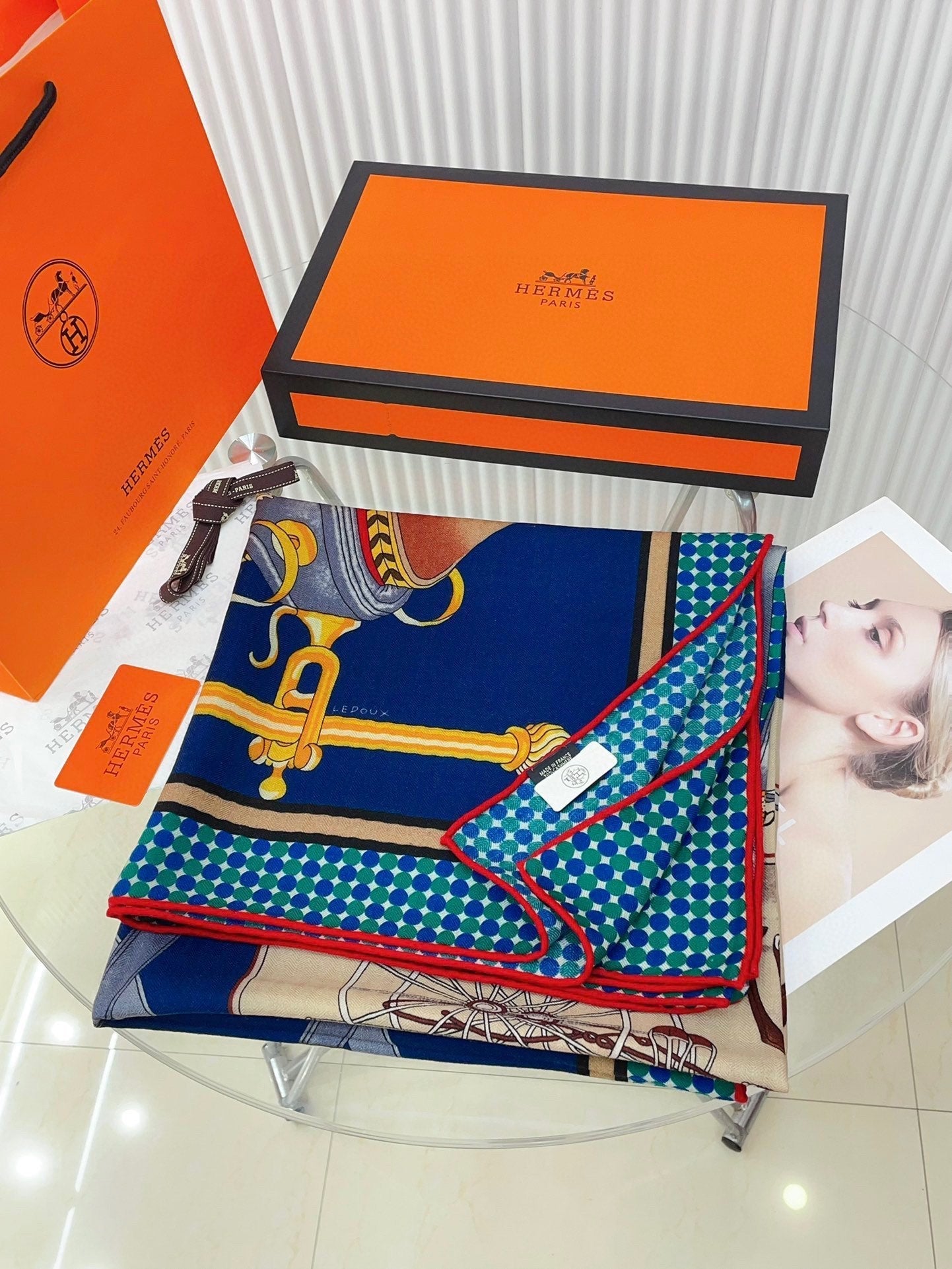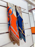Silk Carrick a Pompe Scarf 140 CM In Dark Blue Colorful Cashmere And Silk 381156