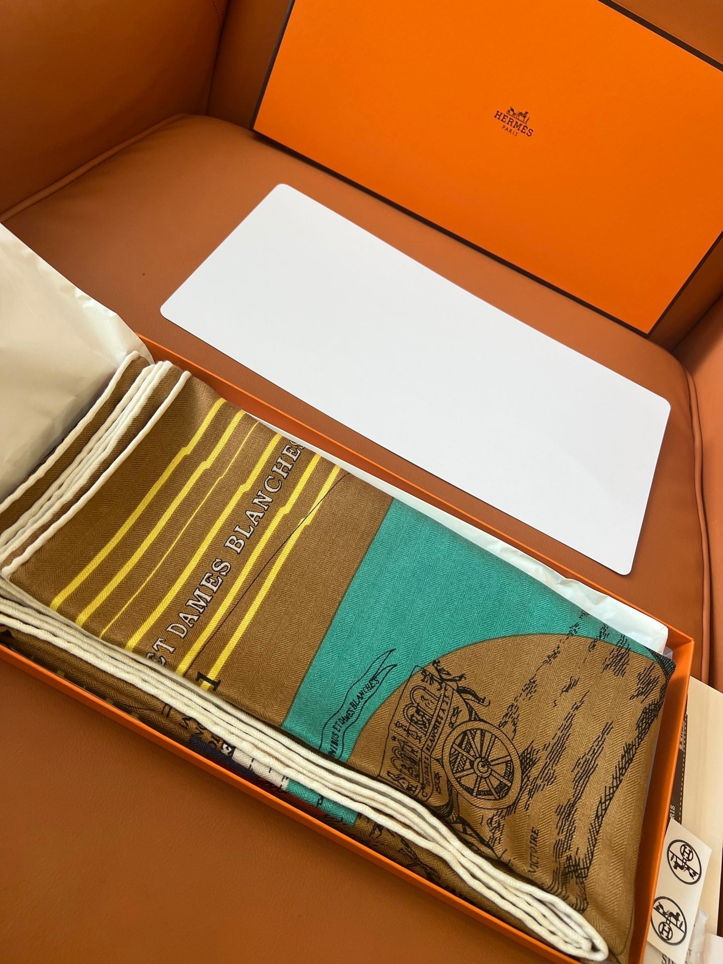 Square Scarf 140 CM In Brown Colorful Cashmere And Silk 327523