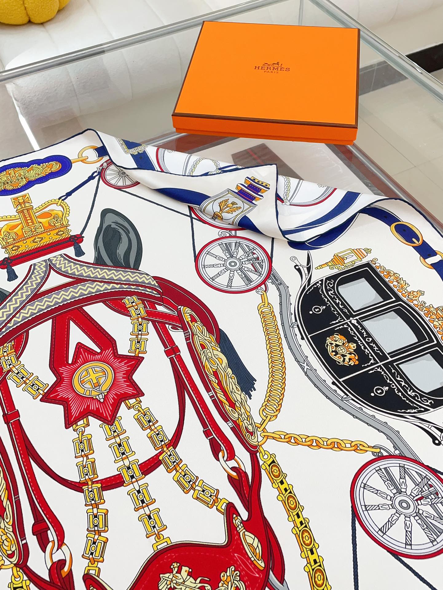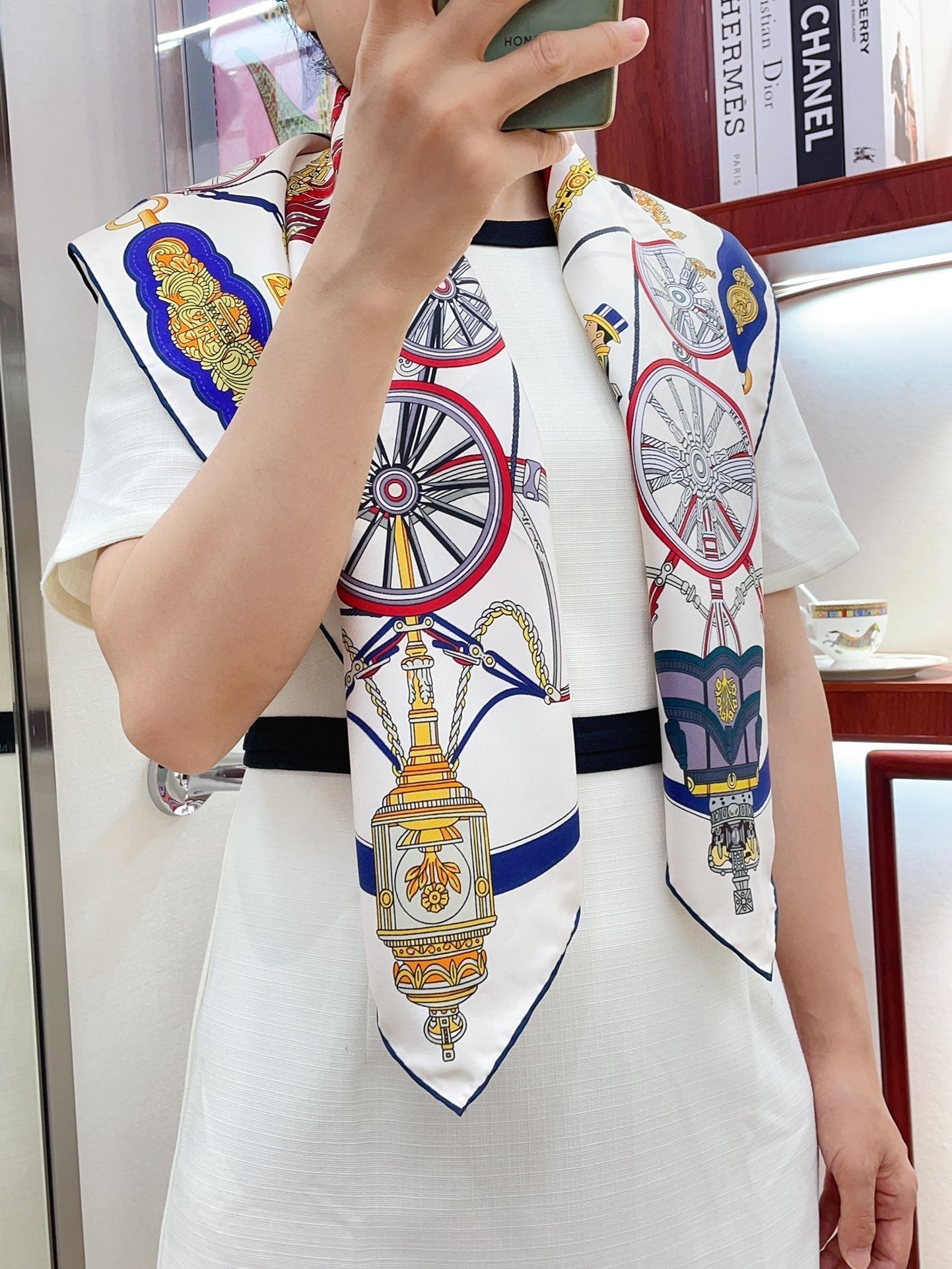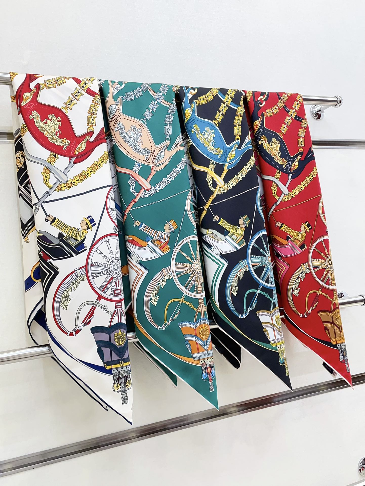 Stately Wheels Scarf 90 CM White Colorful Silk Twill 312874