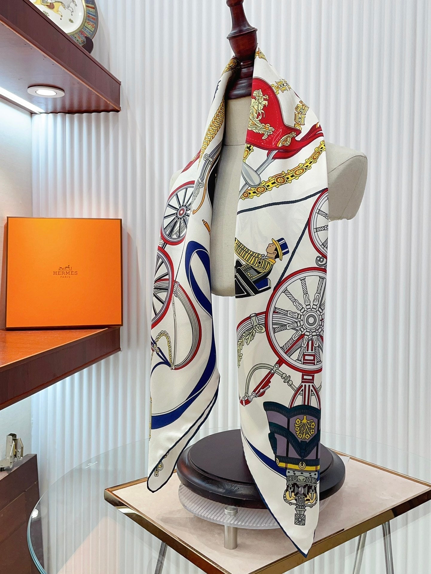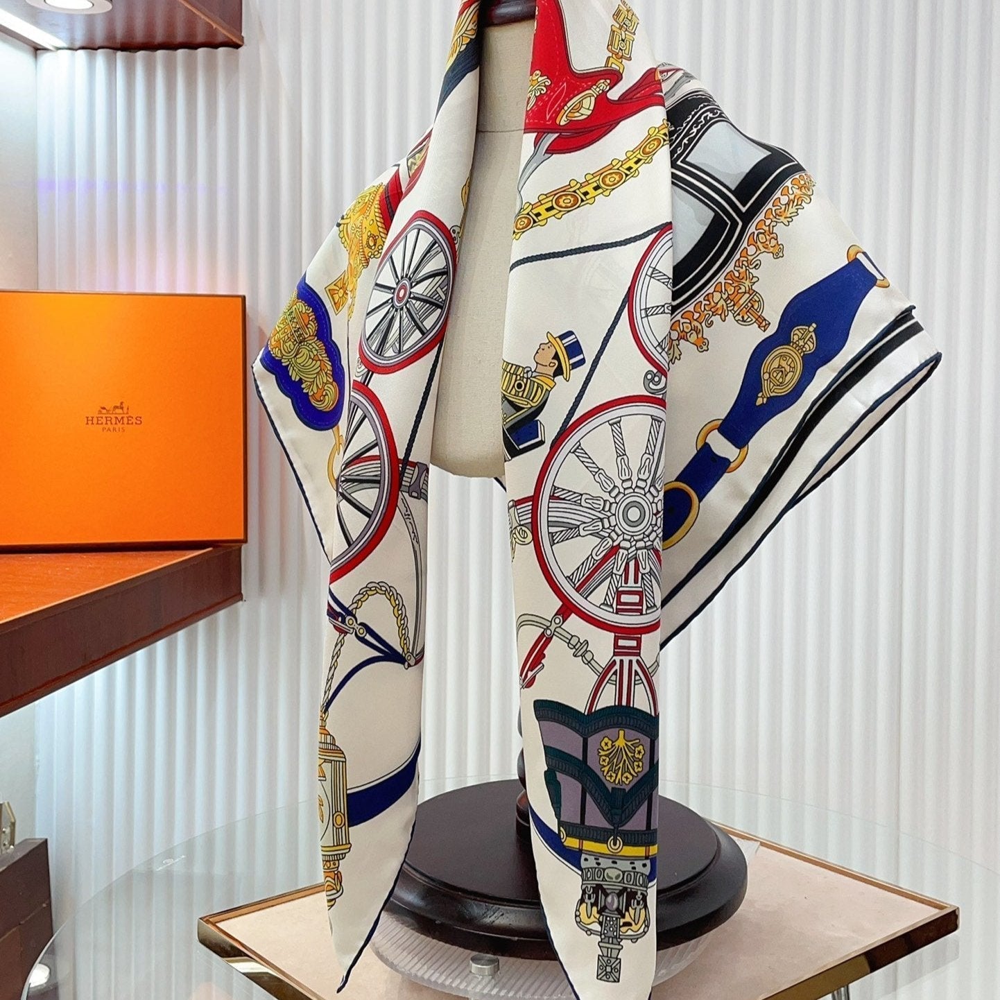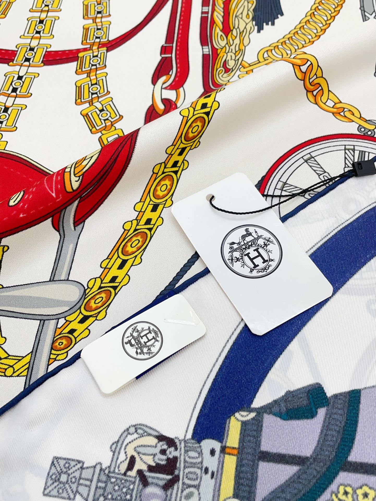 Stately Wheels Scarf 90 CM White Colorful Silk Twill 312874
