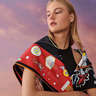 Tea For Two Scarf 90 CM In Black Colorful Silk Twill 296692