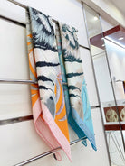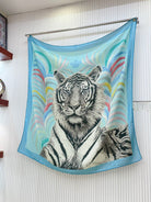 Tigre Royal Double Face Scarf 140 CM In Light Turquoise Colorful Cashmere And Silk 254647