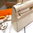 HM KELLY 25CM WHITE EPSOM LEATHER GOLD HARDWARE