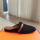 HM OZ Mule Denim Black Brown Cowhide 756853