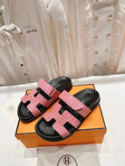 CHYPRE SANDAL BLACK AND BRIGHT PINK LAMBSKIN