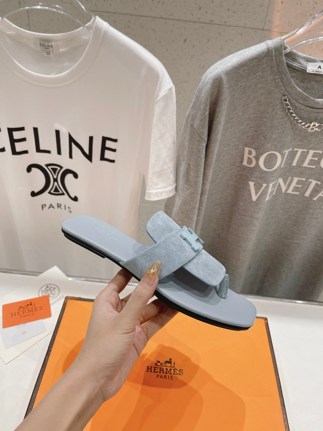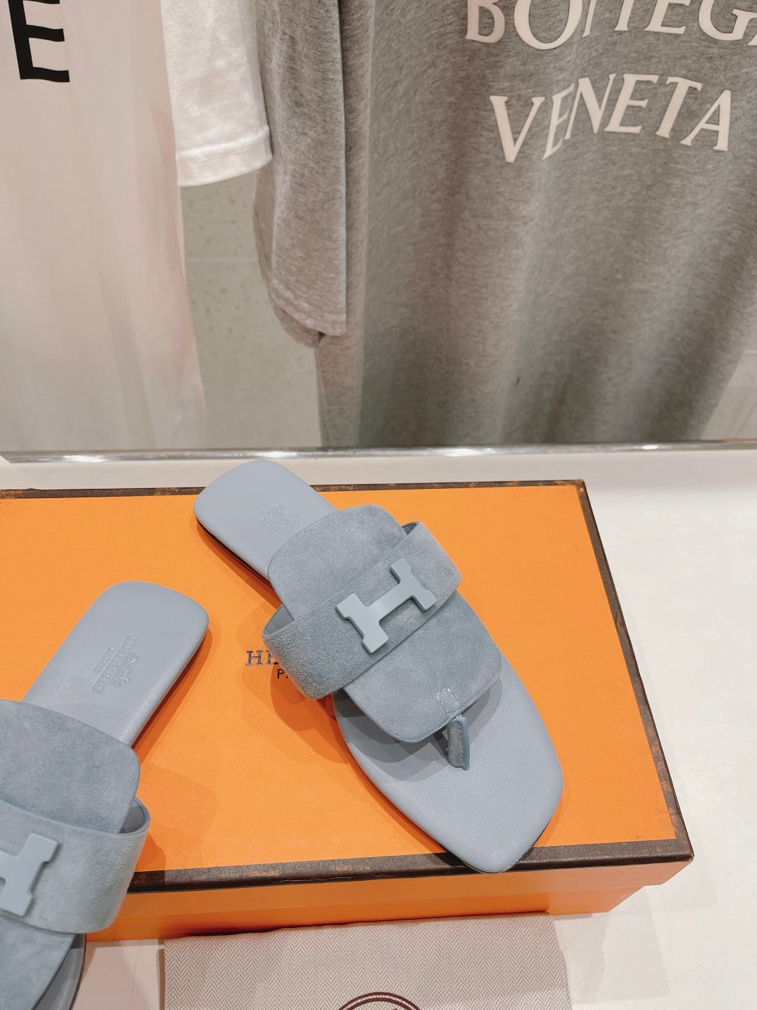 CLASSIC H BUCKLE SANDALS PASTEL BLUE LAMBSKIN