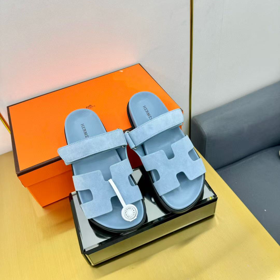 Hermes Chypre Sandal Blue Suede Leather