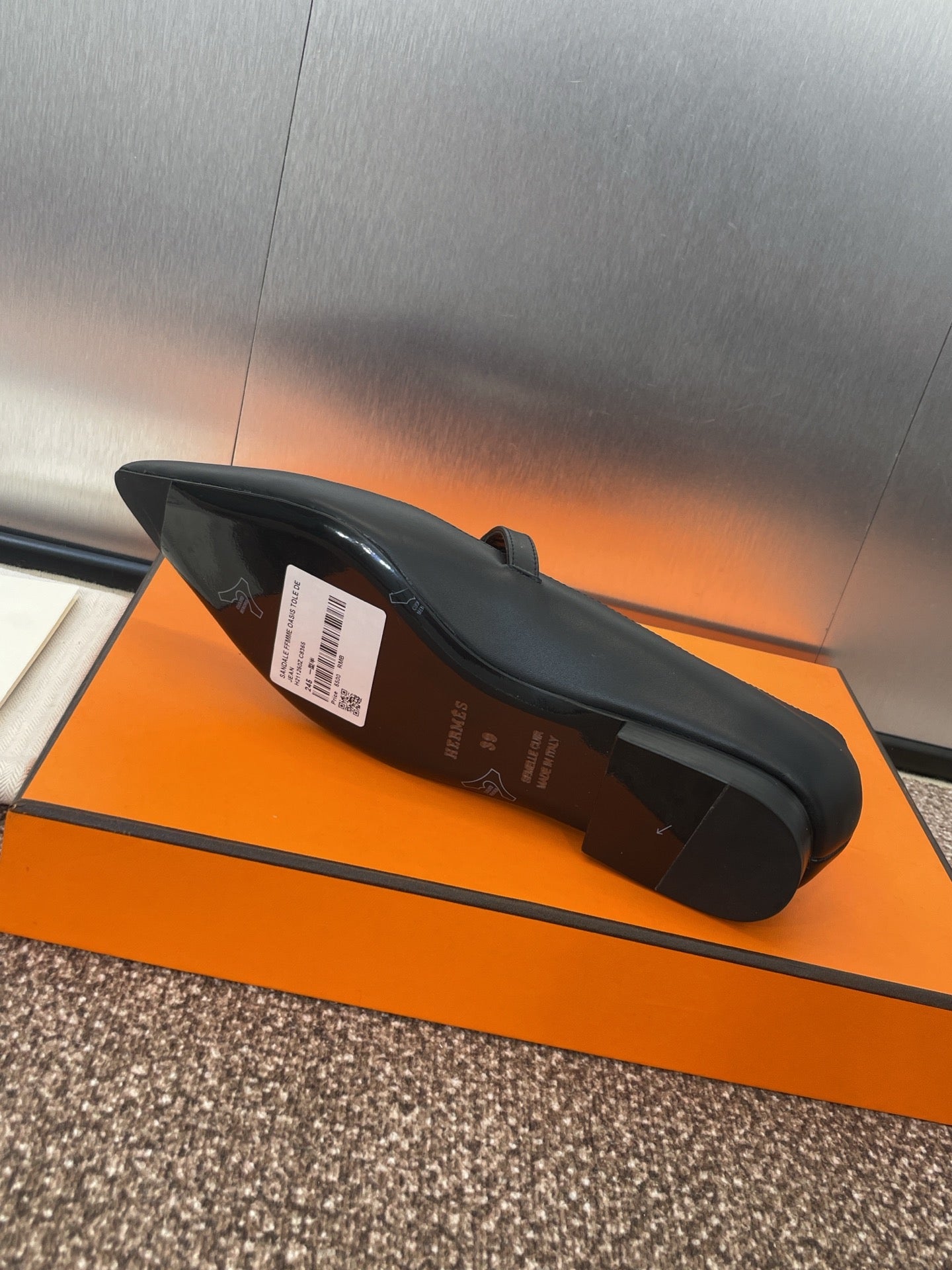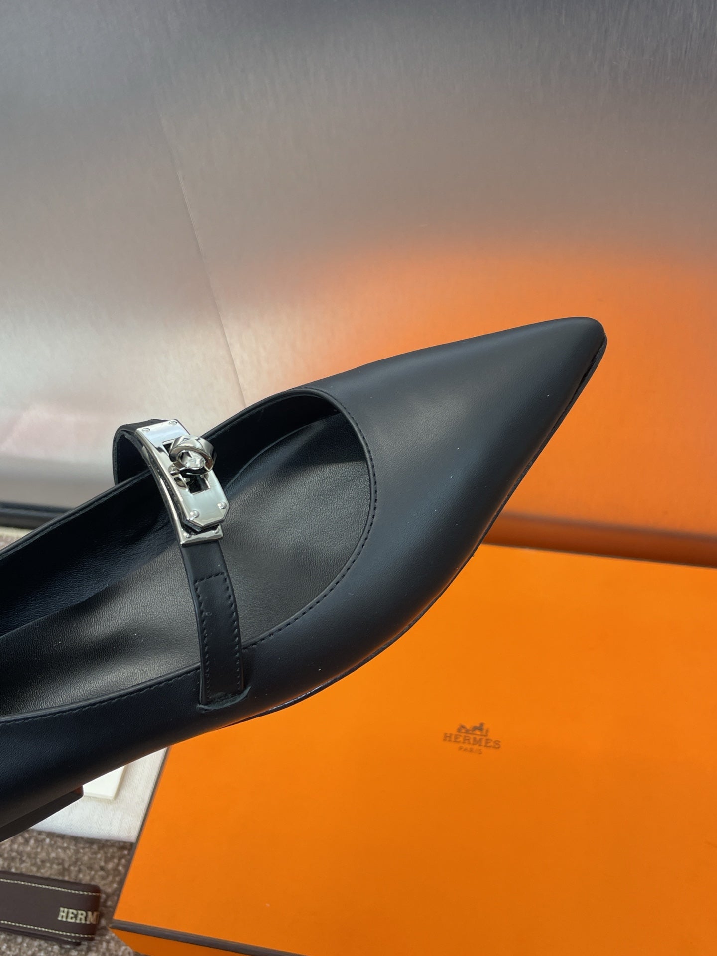 HM 25C Kelly Ballet Flat Noir Calfskin 208268