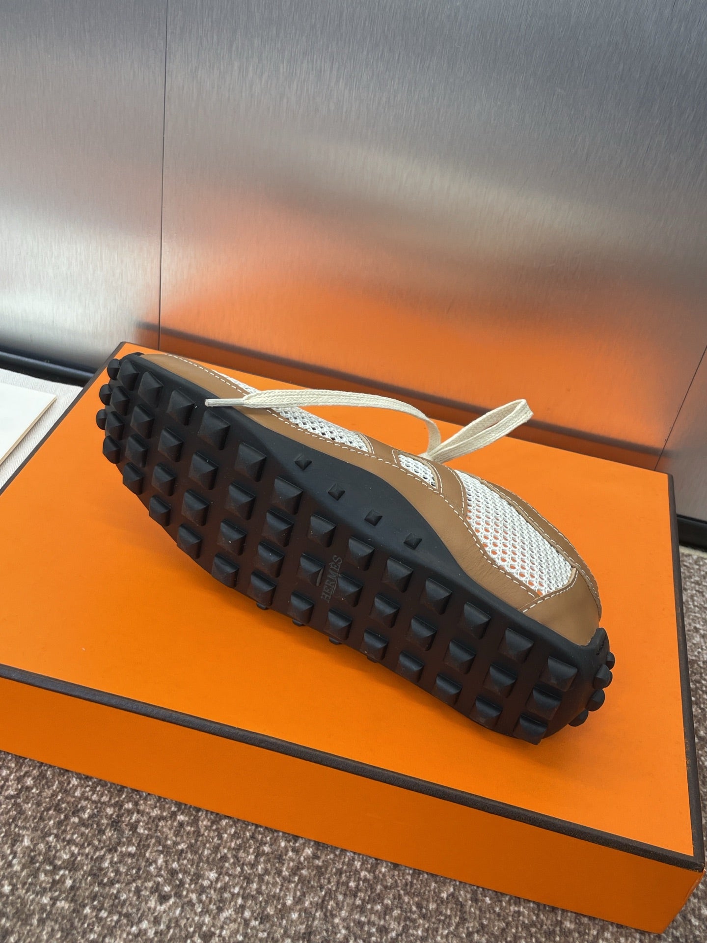 HM 25C Kiga sneaker Brown mix White Crochet knit with Calfskin 208291