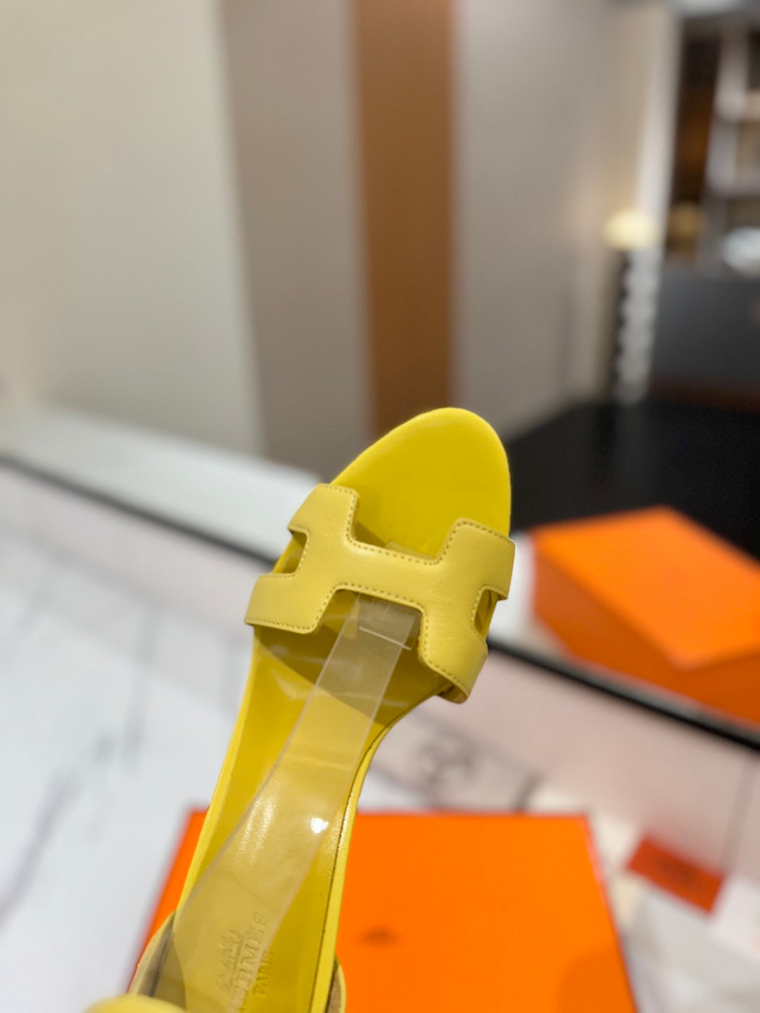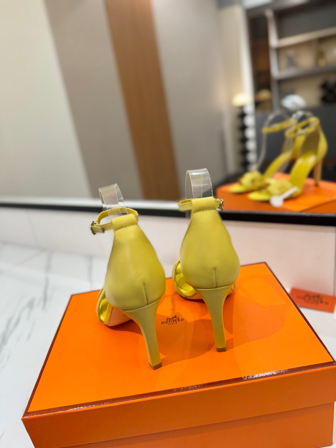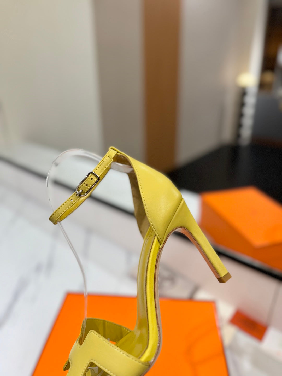 HM Joy 90mm Heeled Sandals Yellow Flat Cowhide 294924