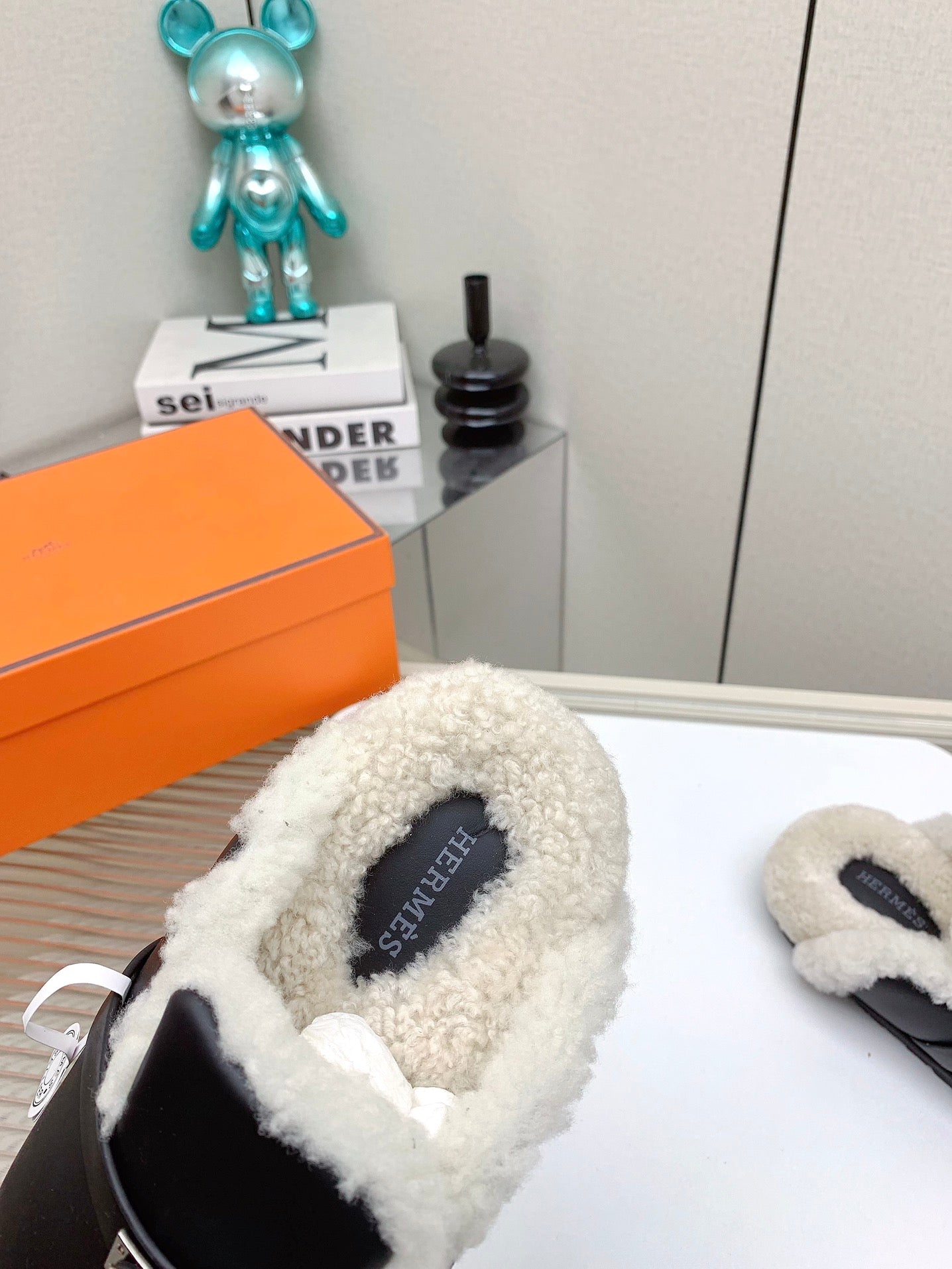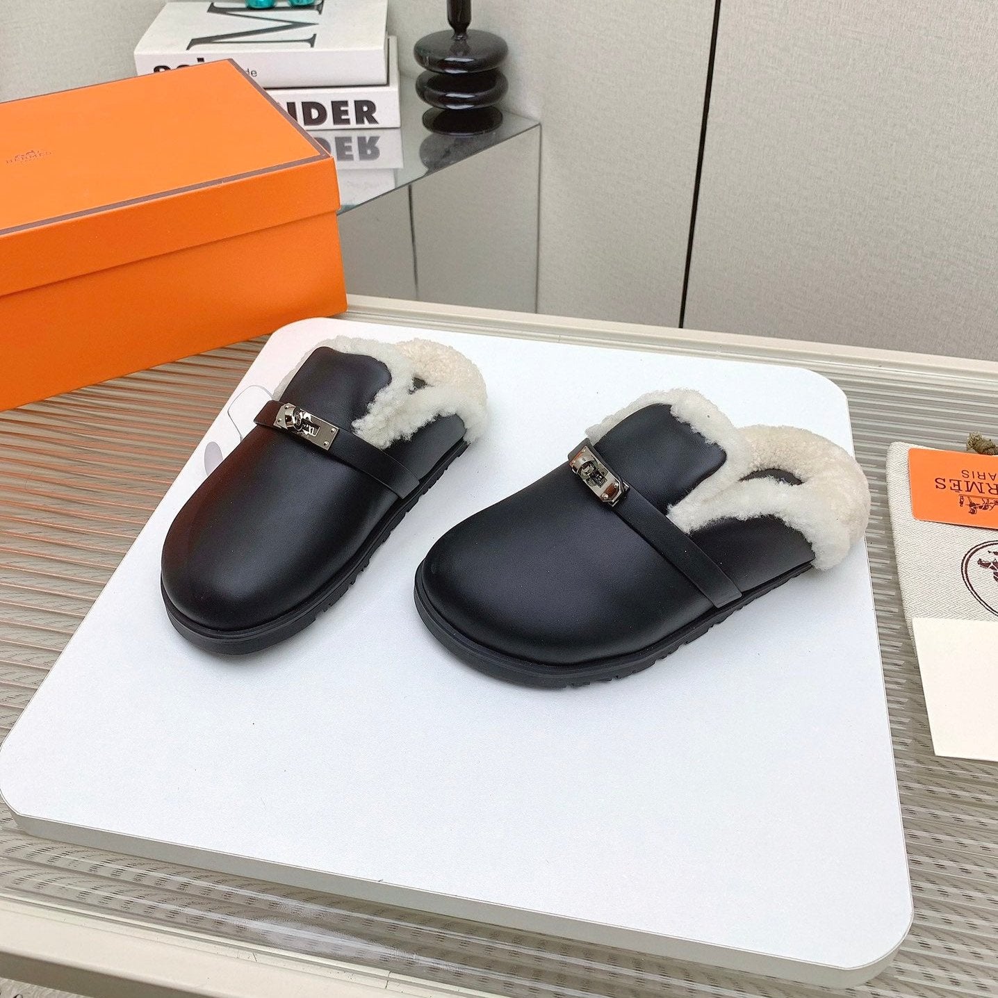 HM Mule 30mm In Black With Fleece And Cowhide Lining 971388