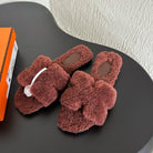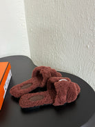 HM Oran Sandal Dark Brown Red Wool Fleece 961014