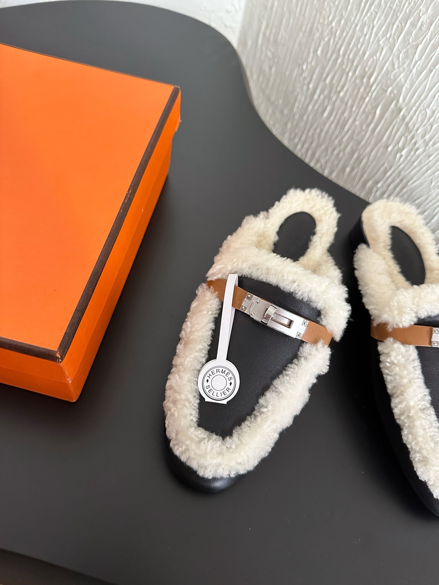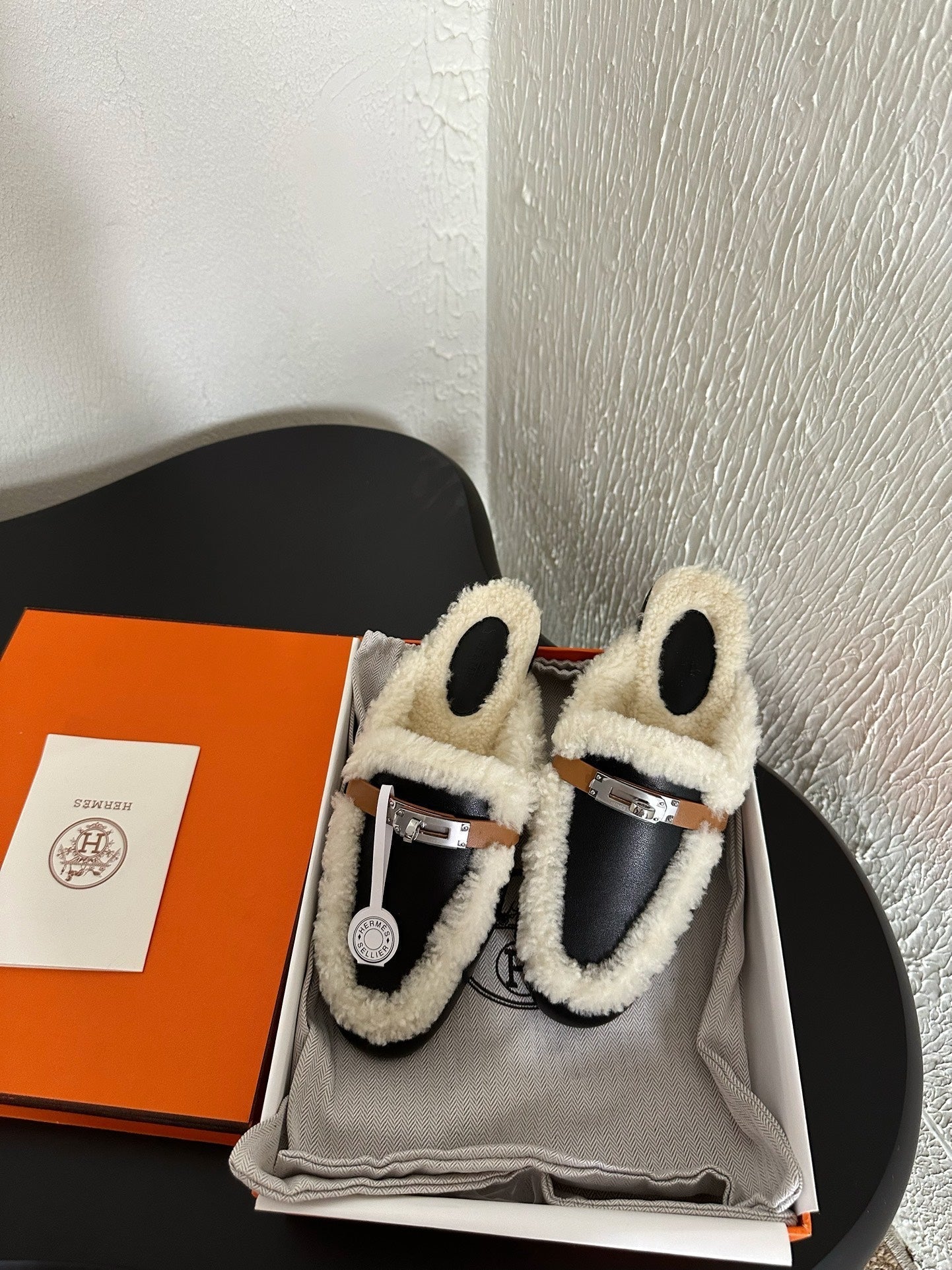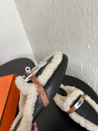 HM Oz Mule Black Mix White Lambskin Lined With Wool Fleece 961093