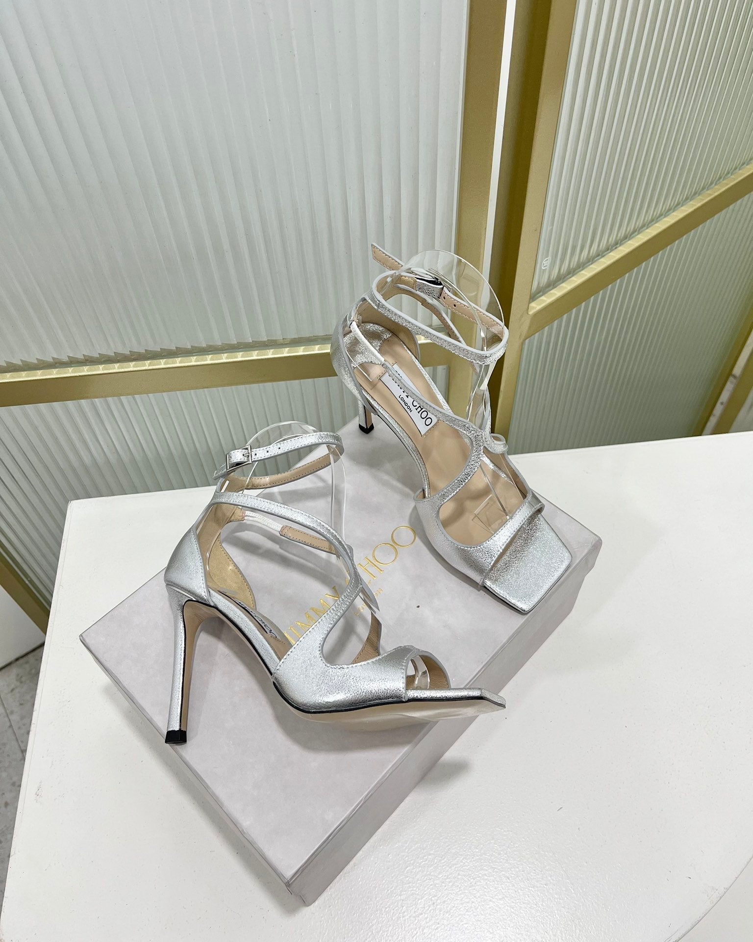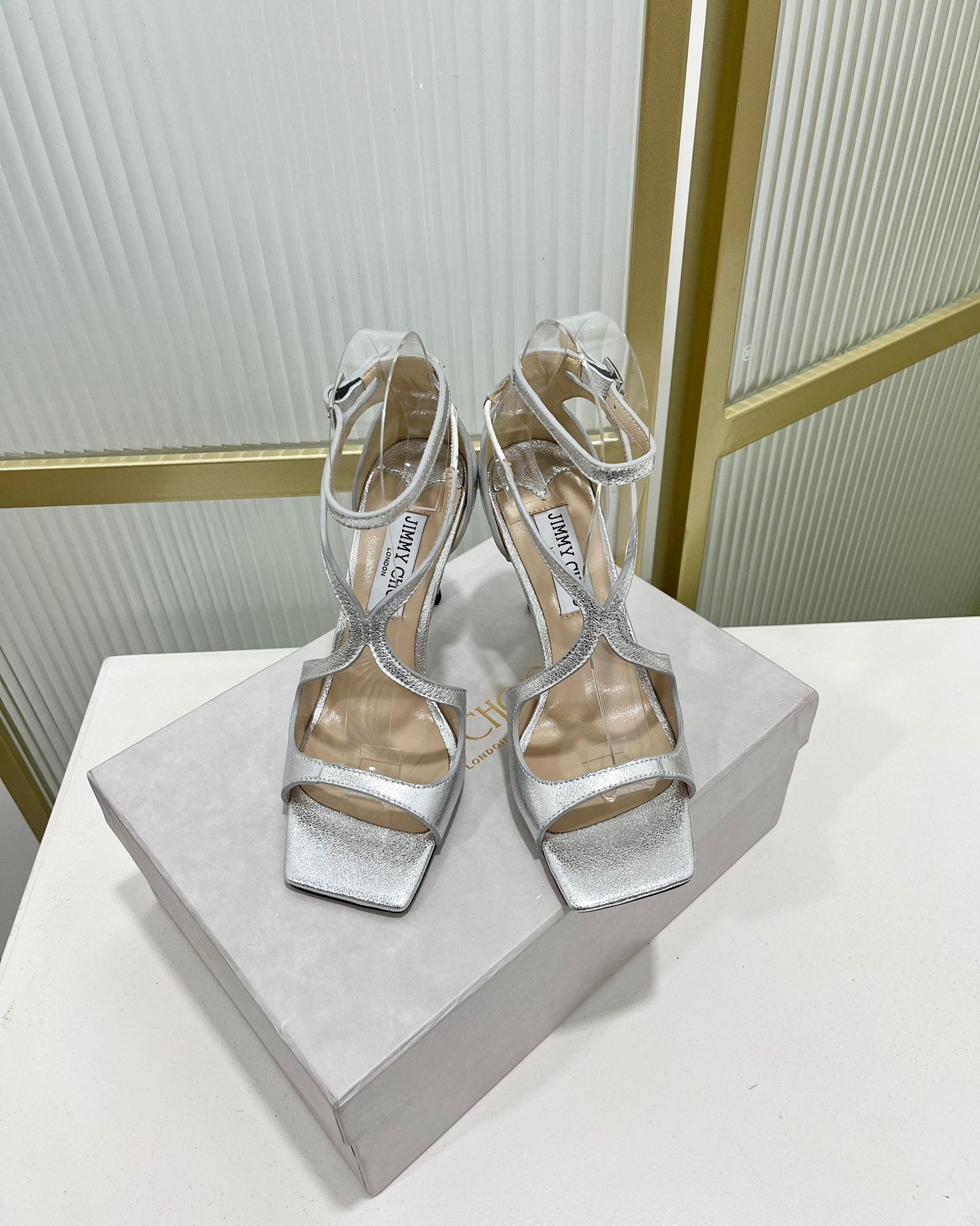 Jimmy Azia 95 In Silver Cowhide Sandals 587709