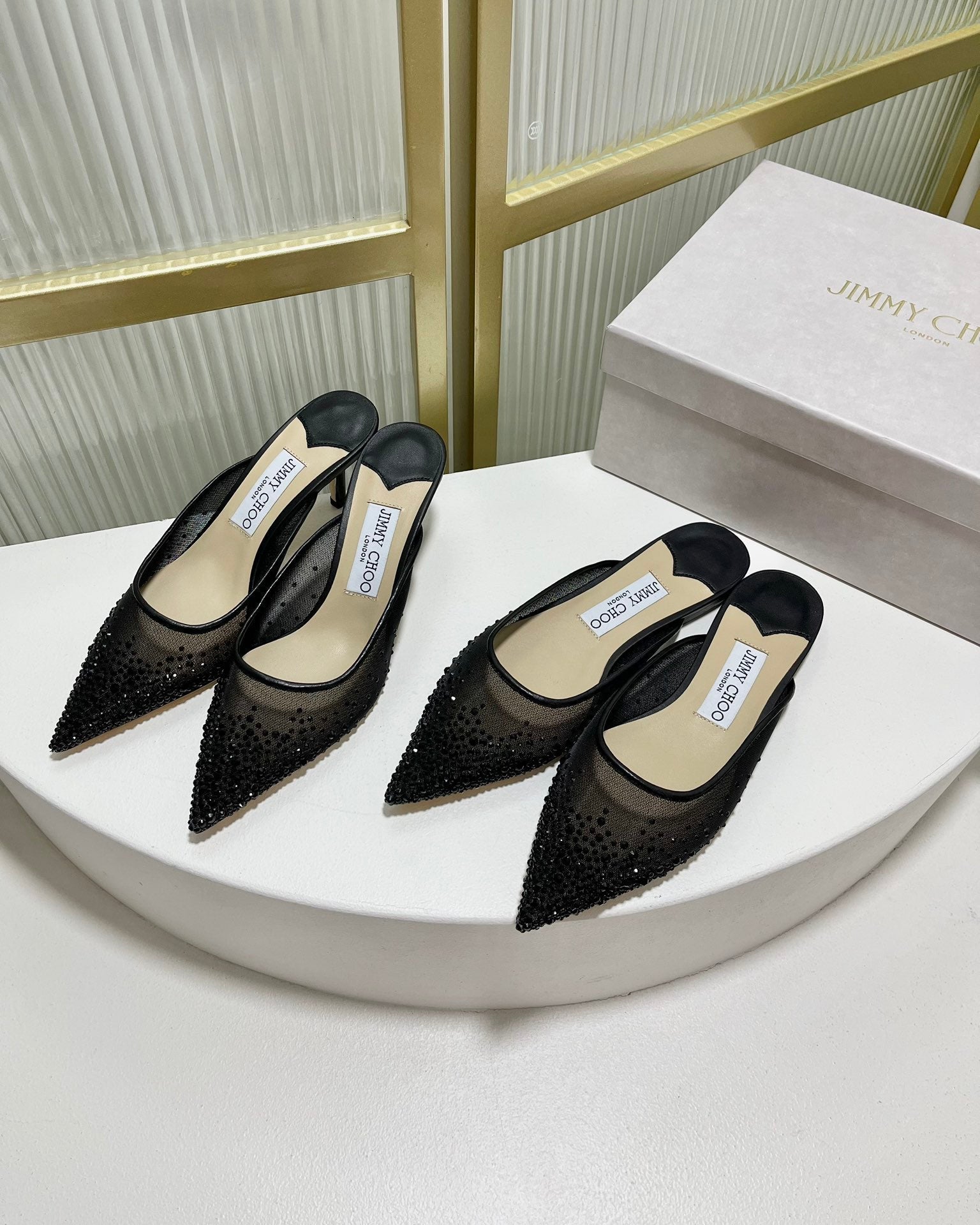 Jimmy Mule In Black Mesh Fabric With Swarovski Crystal 597874