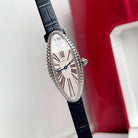 Vintage Baignoire 21mm Silver Diamond Case Black Leather