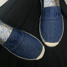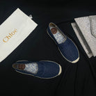 CHLOÉ WOVEN LOAFER IN NAVY BLUE DENIM AND COLORFUL RAFFIA
