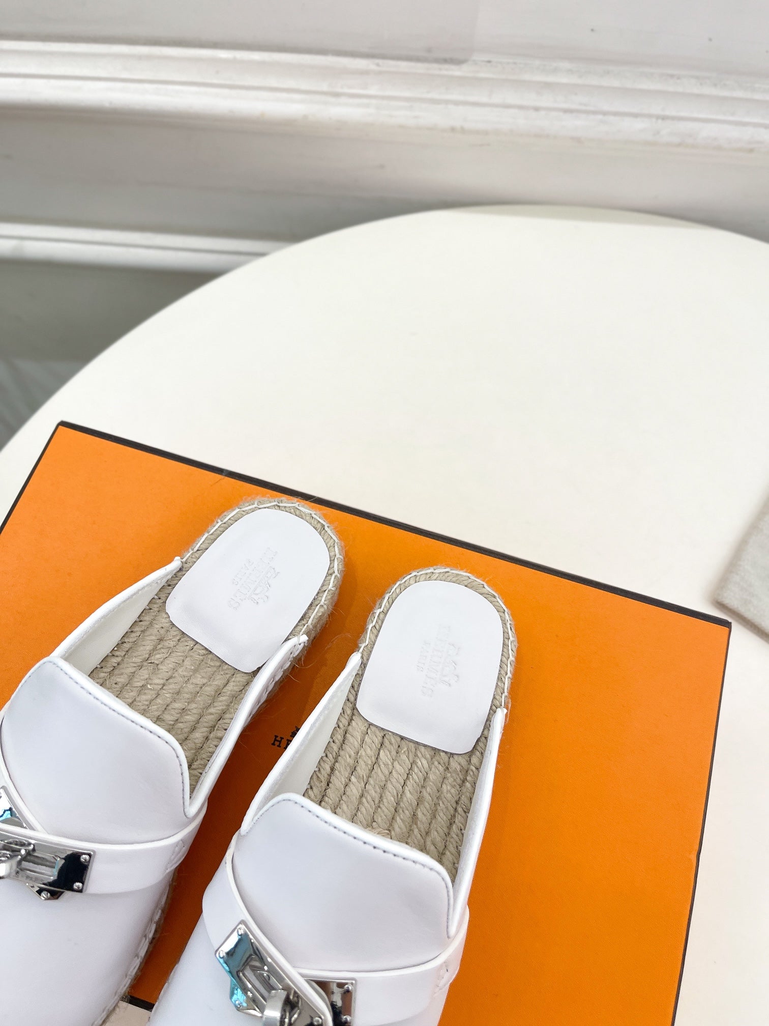 HM Feria Espadrille 20mm White Calfskin And Handwoven Hemp Rope 967989
