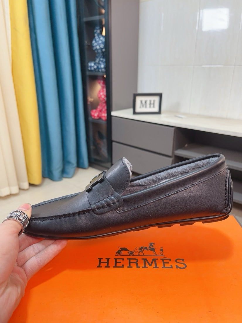 HM Men's Loafer Black Cowhide Fur Lining 524403