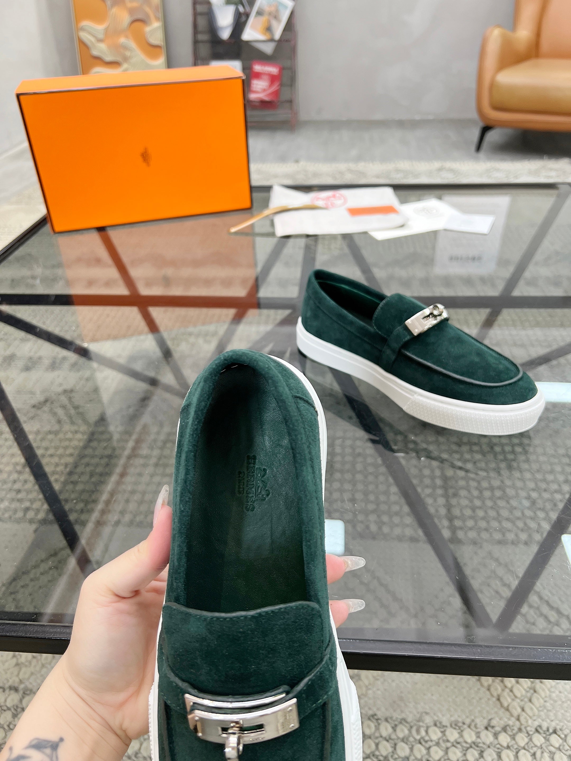 HM Men's Loafers Green Suede 621425