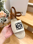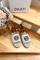 Loew Anagram Black logo White Brown Beige Leather And Canvas Espadrille Sandals
