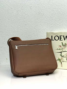 LOE 33 XS MILITARY MESSENGER BAG IN WINTER BROWN CALFSKIN AND JACQUARD