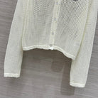 Loewe 25 Mesh Hollow Knitted Cardigan Ivory Wool