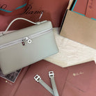 EXTRA POCKET L19 IN PEARL GRAY GRAINED CALFSKIN WITH SILVER HARDWARE